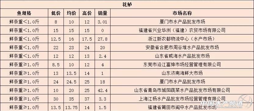 摘要: 中國水產頻道報道,10月24日最新海鱸全國各地批發(fā)市場價。