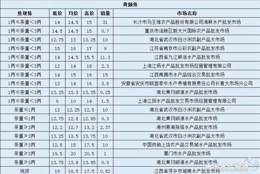 摘要: 中國水產頻道報道,10月24日最新黃顙魚全國各地批發市場價