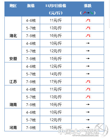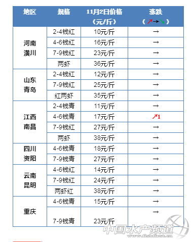 中國水產(chǎn)頻道原創(chuàng)報道, 今天全國小龍蝦整體行情整體穩(wěn)中有升,多地上漲1-2元/斤 11月2日全國小龍蝦塘頭價 11月2日全國小龍蝦市場批發(fā)價 湖北 安徽省 江蘇省 湖南省 更多行情 |