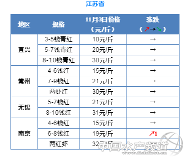 中國水產(chǎn)頻道原創(chuàng)報(bào)道, 多地小龍蝦塘頭價(jià)出現(xiàn)1元/斤的小幅上漲,批發(fā)行情也是穩(wěn)中有升,小龍蝦整體行情繼續(xù)小幅回升! 蝦蟹行情每日播報(bào) 您身邊的行情顧問 歡迎關(guān)注蝦蟹前沿公眾號(hào)! 11月3日全國小龍蝦塘頭價(jià) 11月3日全國小龍蝦市場批發(fā)價(jià) 【關(guān)鍵字】:小龍蝦 塘頭價(jià) 市場批發(fā)價(jià) 水產(chǎn)養(yǎng)殖 |