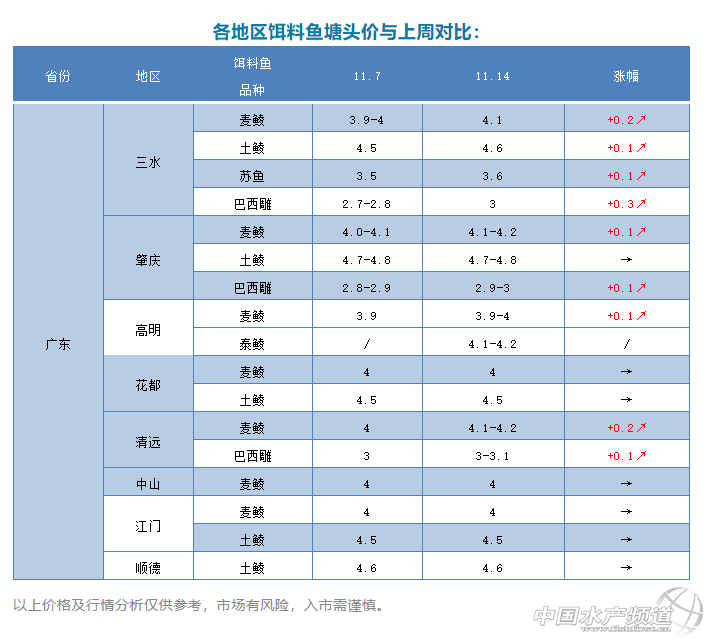 | 中國水產頻道原創報道, 文/圖 鱖鱸前沿 李靜 本周,鱖魚價格再次下滑,廣東、江西和山東鱖魚價格分別又跌了1-2元/斤,養殖戶和流通商紛紛表示頂不住了,鱖魚價格還會往下走嗎? 今天廣東最好規格的鱖魚訂21元/斤,中桂三成以上的統級跌破20元/斤,偏大魚比例高的僅18-19元/斤,規格越大虧損越嚴重。江西和山東標桂又跌1元/斤,僅21元/斤,不僅價格低,還賣不動,銷量比往年大幅減少。 面對當前價格低、銷量少的雙重困境,養殖戶和流通商的日子都不好過。有人樂觀地表示,價格跌到一定程度必然反彈,養殖戶需定下心,不必急于拋售。另外,也有一些業內人士看好晚桂價格,認為現在行情不好,正好是放苗的大好時機。 全國鱖魚銷量下滑,多地鱖魚有賣不動的現象,而目前江蘇等地鱖魚正在大量上市,所以預計本月鱖魚價格上漲機會不大。 餌料魚:本周廣東地區麥鯪價格繼續上漲,其中三水、肇慶、高明和清遠麥鯪分別漲了0.1-0.2元/斤左右,三水、肇慶、清遠巴西雕也漲了0.1-0.3元/斤左右。目前鱖魚價格低迷,養殖戶出魚積極性不高,餌料魚價格有繼續上漲的趨勢。 |