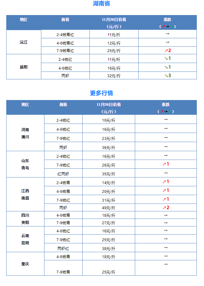 11月26日全國小龍蝦市場批發價