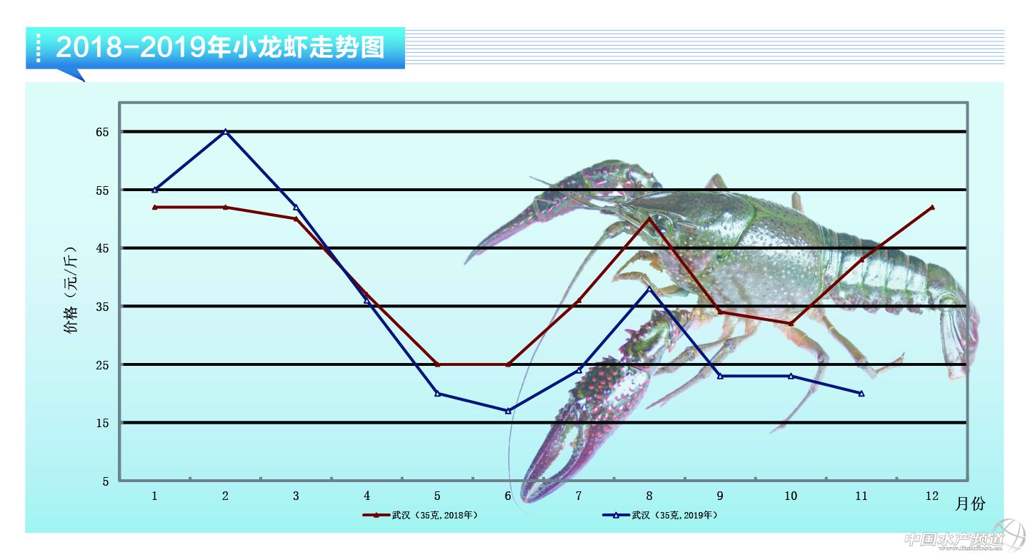 中國水產頻道原創報道, 小龍蝦:走量減少,平均價格上漲 11月份湖北省天氣寒冷,小龍蝦出洞活動少,繁殖過后也有大量的小龍蝦死亡,捕撈量也就隨之減少。本月的小龍蝦市場走量僅為上個月的1/6,11月下旬武漢白沙洲市場小龍蝦市場的日均走量為5噸/天,市場銷售價格比上月同期平均上漲4元左右。小龍蝦武漢白沙洲市場小龍蝦市場銷售價為:20-34克的小龍蝦18元/斤;35-49克的小龍蝦28~30元/斤;50克以上的小龍蝦36~38元/斤。 荊州:10-19克的小龍蝦11元/斤;20-34克的小龍蝦17元/斤;35-49克的小龍蝦28元/斤;50克以上的小龍蝦33元/斤。 潛江:10-19克的小龍蝦13元/斤;20-34克的小龍蝦19元/斤;35-49克的小龍蝦26元/斤;50克以上的小龍蝦34元/斤。 荊門:20-29克的小龍蝦16元/斤;30-45克的小龍蝦22元/斤。 天門:10-19克的小龍蝦13元/斤;20-34克的小龍蝦19元/斤;35-49克的小龍蝦27元/斤;50克以上的小龍蝦40元/斤。 洪湖:20-34克的小龍蝦14元/斤;35-49克的小龍蝦25元/斤;50克以上的小龍蝦38元/斤。 監利:10-19克的小龍蝦11元/斤;20-29克的小龍蝦17元/斤;30-49克的小龍蝦23元/斤;50克以上的小龍蝦33元/斤。 益陽:10-19克的小龍蝦11元/斤;20-29克的小龍蝦16元/斤;30-49克的小龍蝦21元/斤,50克以上的小龍蝦30元/斤。 沅江:10-19克的小龍11元/斤;20-29克的小龍蝦18元/斤;30-49克的小龍蝦25元/斤,50克以上的小龍蝦32元/斤。 鹽城:10-19克的小龍蝦12元/斤;20-29克的小龍蝦17元/斤;30-49克的小龍蝦23元/斤;50克以上的小龍蝦33元/斤。 興化:10-19克的小龍蝦13元/斤;20-39克的小龍蝦17元/斤;40-49克以上的小龍蝦25元/斤;50克以上的小龍蝦33元/斤。 常州:10-19克的小龍蝦8元/斤;20-39克的小龍蝦20元/斤;40-49克以上的小龍蝦24元/斤;50克以上的小龍蝦33元/斤。 淮南:10-19克的小龍蝦13元/斤;20-34克的小龍蝦18元/斤;35-49克的小龍蝦24元/斤;50克以上的小龍蝦35元/斤。 亳州:10-19克的小龍蝦13元/斤;20-34克的小龍蝦19元/斤;35-49克的小龍蝦27元/斤;50克以上的小龍蝦34元/斤。 南昌:10-19克的小龍蝦14元/斤;20-34克的小龍蝦20元/斤;35-49克的小龍蝦31元/斤;50克以上的小龍蝦40元/斤。 信陽:10-19克的小龍蝦10元/斤;20-34克的小龍蝦16元/斤;35-49克的小龍蝦23元/斤;50克以上的小龍蝦36元/斤。 青島:10-19克的小龍蝦14元/斤;20-34克的小龍蝦19元/斤;35-49克的小龍蝦26元/斤;50克以上的小龍蝦35元/斤。 資陽:10-19克的小龍蝦16元/斤;20-35克的小龍蝦18元/斤;30-49克以上的小龍蝦23元/斤。 重慶:10-19克的小龍蝦11元/斤;20-29克的小龍蝦18元/斤;30-49克的小龍蝦25元/斤;50克以上的小龍蝦30元/斤。 預計2019年11月份小龍蝦的市場銷量可能會變動不大,市場價格會上漲。(耿明順) 更多關于小龍蝦市場趨勢的信息請戳:http://fishfirst.cn/portal.php?mod=list&catid=91 更多關于小龍蝦價格行情的信息請戳:http://fishfirst.cn/portal.php?mod=list&catid=16 |