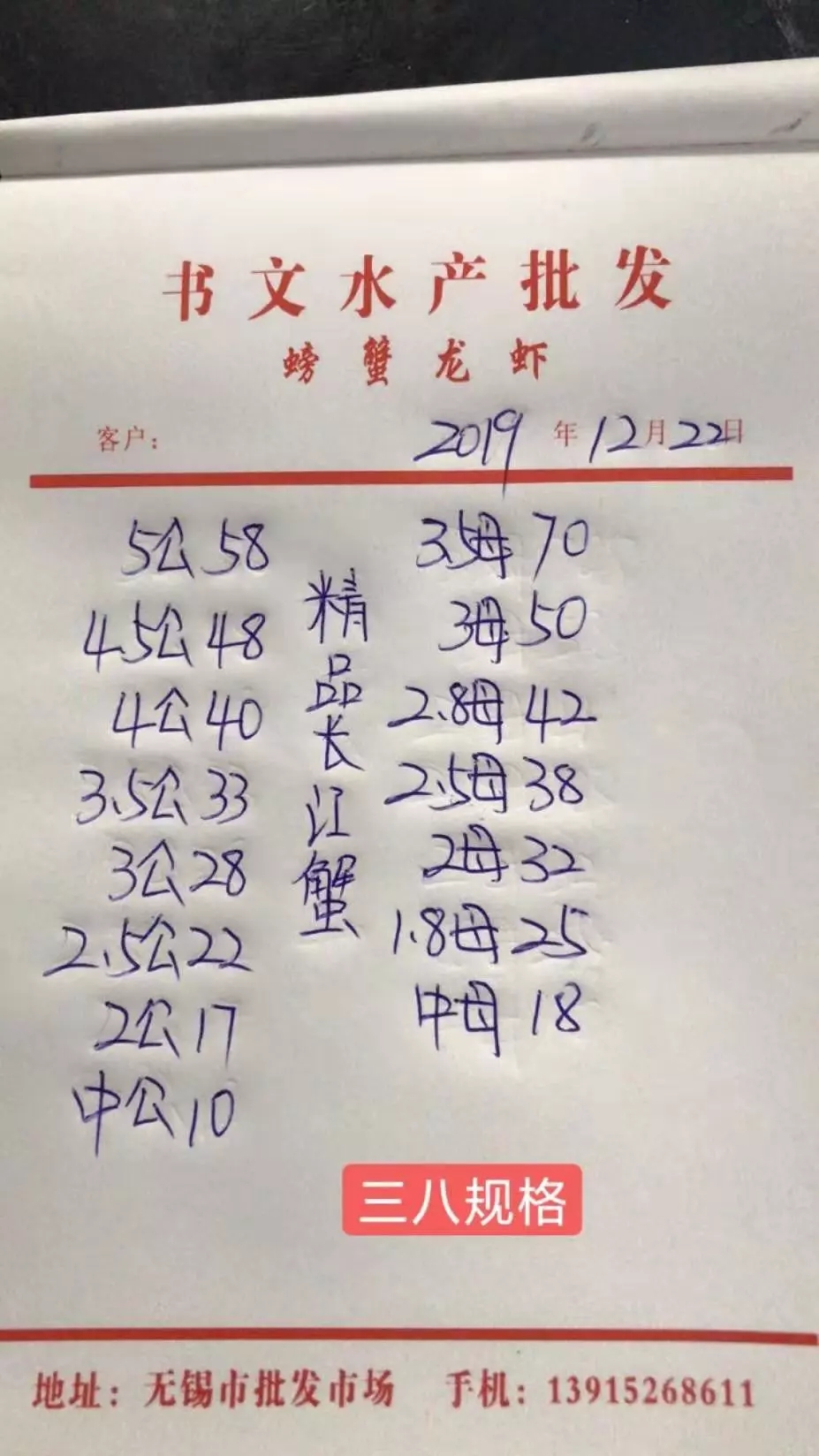 | 中國水產頻道原創報道, 最新河蟹行情解析 高淳 近期高淳精品蟹價略有波動,今天大蟹部分下跌,小蟹微漲。其中4.5公、4公均跌2元/斤,4母跌5元/斤;3.5公、3公均漲2元/斤,2.5母、2母均漲1元/斤。與去年同期相比,目前蟹價明顯偏低。 興化 近期興化普蟹價格整體呈上漲趨勢,今天蟹價小幅上漲,其中4.5公、4公、3母、2.5母等規格均漲1元/斤。 今日河蟹參考價 興化 此報價由江蘇好潤馬家蕩店宋利坤提供 高淳 此報價由江蘇好潤固城湖店劉坤提供 泗洪 此報價由泗洪孫老板提供 無錫 |