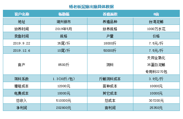 | 中國水產頻道原創報道, 臺灣泥鰍這樣養很賺錢 文/圖 天邦食品股份有限公司肖雄 泥鰍,素有“水中人參”之美譽,因其味道鮮美,營養豐富,能降脂降壓等優點,深受廣大消費者喜愛。此外,泥鰍可食部分占整個魚體的80%左右,高于一般淡水魚類。泥鰍養殖主要以臺灣泥鰍為主,臺灣泥鰍具有養殖周期短、長勢快、病害少等優勢,這些年發展規模不斷擴大,浙江湖州地區的千金、菱湖、新市等鄉鎮泥鰍養殖客戶也越來越多。 泥鰍喂料現場 今天我們要介紹的是新市泥鰍養殖戶楊勤福。楊老板以前一直以養殖黃顙魚為主,由于前兩年黃顙魚發病厲害、市場行情低迷,黃顙魚養殖積極性下降,于是今年開始嘗試養殖泥鰍,但令他沒有想到的是今年8畝的泥鰍塘卻給他帶來了20萬的利潤。 楊老板8畝泥鰍塘分2次出鰍,2019年9月22日出鰍18000斤,12月6日出鰍50000萬,總計出鰍68000斤(畝產8500斤),養殖全程總計使用天邦全熟化35蛋白泥鰍專用料2270包,餌料系數1.3(包產30斤)。這樣的出鰍效果令楊老板沒有想到,他高興的說:“今年是第一次養泥鰍,本來心里沒底的,后來我朋友推薦我用天邦飼料,這兩年他一直在用,效果不錯,抱著試試看的心態今年也第一次使用天邦飼料,真沒想到效果會這么好。” 楊老板第一年養殖臺灣泥鰍,即使今年市場行情不算很好,但8畝泥鰍塘卻凈賺20萬。楊老板表示,不管養殖什么品種都會遇到市場行情好與不好的時候,這個我們沒法控制,我們只能加強養殖過程管理,提高產量,降低成本才是關鍵。對此,楊老板分享了幾點自己的成功經驗。 科學投喂 傳統泥鰍養殖過程中飼料投喂方式主要是人工投料,可以人為控制投喂量,卻有費時費力、飼料浪費,泥鰍長勢不均勻等缺點。隨著這幾年泥鰍養殖密度的提高,這些缺點也愈加顯著。楊老板的泥鰍塘則是以投料機投喂,8畝泥鰍塘配備了2臺投料機。對于這種投喂方式,他介紹說:“投料機投料范圍廣,投料速度可控制,飼料浪費少,泥鰍吃食時間長、長勢快、規格均勻,泥鰍品相好,魚販子喜愛。” 注重水質調控、底質管理 泥鰍由于養殖周期短,吃食量大,一般5個月左右可以出鰍,殘餌、糞便、藥物殘留等導致池塘水質和底質容易經常惡化,直接影響泥鰍的健康,因此,水質和底質管理必不可少。楊老板泥鰍塘定期7-10天使用一次天邦5505底三效進行改底,改底的同時可以降低水體亞硝酸鹽、氨氮等指標,后期搭配使用5207超能活菌王進行穩水,通過這種動保搭配使用模式,今年楊老板泥鰍塘水質和底質一直保持的很好。 選擇優質飼料 |