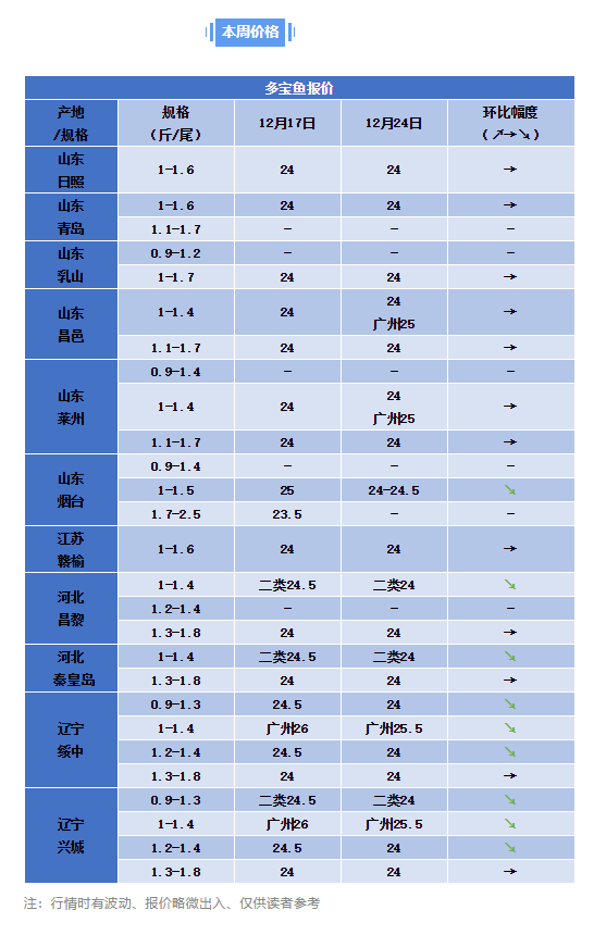 又跌1元/斤,養殖戶心痛!12月24日多寶魚價格播報