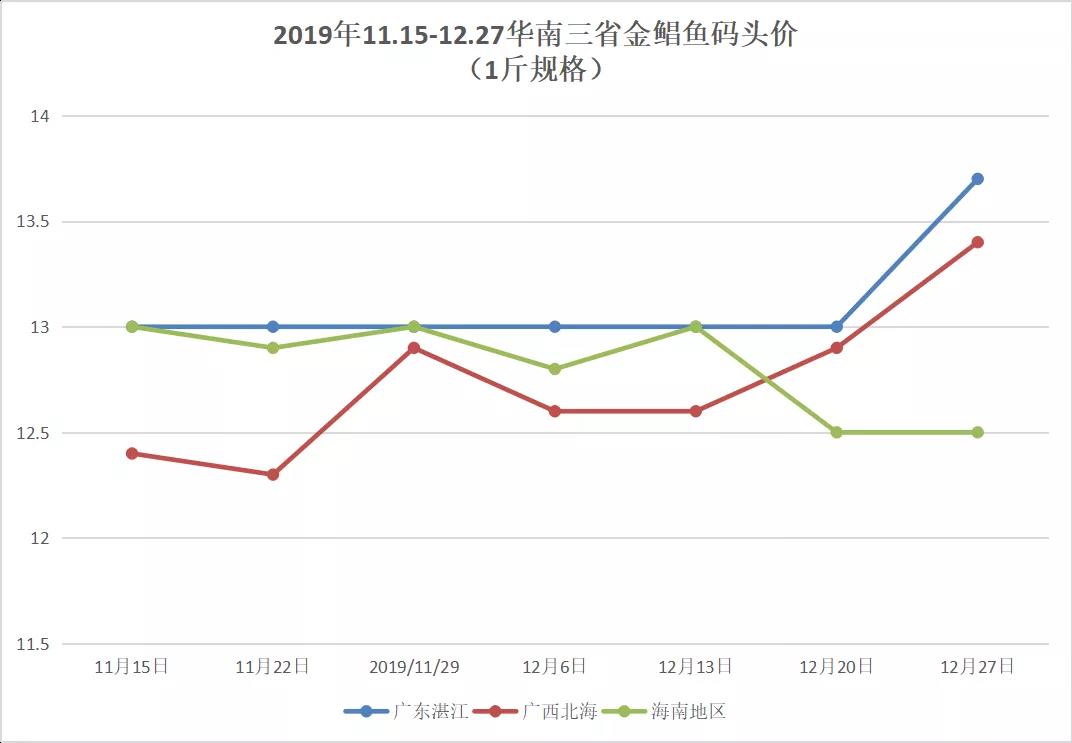 文/ 中國水產頻道 張紅 一周行情分析 中國水產頻道原創報道,時至12月底,金鯧魚價格持續叒叕上漲了!2019年金鯧魚行業終于劃上圓滿句號。在存活量大幅減少的情況下,兩廣地區魚價出現了明顯上漲,但此時養殖戶不為價格報所動,看好未來越冬更好價格,所以目前大部分養殖戶惜售心理強烈,碼頭交易顯得冷清。 截止12月27日,湛江雷州東里金鯧魚存活量大概在200多萬斤,碼頭交易價1斤左右規格為13.7元/斤,較上周上漲了0.7元/斤;1.1斤左右規格為13.9元/斤,較上周上漲了0.7元/斤;1.2斤規格為14.2元/斤,較上周上漲了0.9元/斤.漲幅不可謂不大。 廣西北海鐵山港:與湛江地區一樣,魚價也現攀漲。0.9-1斤規格碼頭價為13.3元/斤,較上周約漲0.4元/斤;1.1-1.2斤規格為13.5-13.7元/斤,較上周也漲了0.4元/斤。 海南地區:兩廣地區的由于前段時間理性出魚,目前存活量大幅減少,價格持續上漲。不同的是,海南地區整體出魚量偏少,但養殖戶并不急于出魚,因為海南養殖大戶為主,基本是自養自加工自銷方式。本周海南的魚價平穩低位運行。具體為:0.9-1斤規格12.3-12.4元/斤;1-1.1斤規格為12.6-12.8元/斤,1.2-1.3斤規格為13-13.2元/斤;1.4斤規格為13.4元/斤。以上規格較上周或持平或略下降0.1-0.2元/斤。 碼頭交易價走勢 華南三地金鯧魚碼頭價走勢 凍品市場批發價 凍品魚市場怎一個“亂”字了得? 據流通商稱,由于前期大家全力收魚,大量的資金囤積在冷庫,年關已近,為了資金回籠周轉,目前凍品魚出現近似“瘋狂”的拋售,從而引發了激烈的競爭。為了爭奪更多的客源,很多商量不惜大降價,但業內人士注意:大降價的背后可能是翻倍包冰衣,價格雖便宜了但可能很大部分是買了冰。 本周正常包冰的凍品魚價格仍然保持不變。具體如下: 200/300g規格:180元/件,與上周持平; 300/400g規格:200元/件,與上周持平; 400/500g規格:210元/件,與上周持平; 500/600g規格:220元/件,與上周持平; 600/700g規格:230元/件,與上周持平; 700/800g規格:240元/件,與上周持平。 |