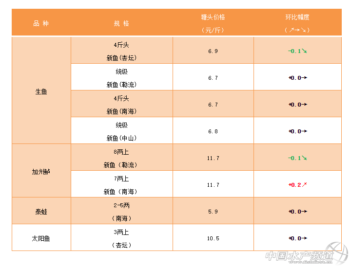 | 中國水產頻道原創報道, 文/ 珠海海龍、水產前沿 吳佳輝 淡水特種魚:生魚走貨量減少,價格略微下滑 生魚 順德杏壇:舊魚7-8成左右統級6.7-6.9元。新魚大魚3-6成統級發價5.7-6.0元。隨著上周一波走魚量高峰,下游市場趨于飽和,本周走貨量收窄,魚中持觀望狀態,發價下跌0.1-0.2元。天氣漸冷,建議魚塘做好預防爛身處理。 勒流區域:舊魚8成左右發價6.8元,新魚5成左右發價5.8元。臨近春節,開始備貨過年,稍微爽市。今年天氣可能倒春寒比較厲害,建議現在做好改底,肥水,加強魚身體質工作。 南海西樵九江:舊魚分級2斤上7.0-7.2元/斤,2斤下5.4-5.6元/斤,統貨在6.6~6.8元。隨著春節寒假等假期到來,市場消費量會有所增加,后續降溫下雪等因素魚價預計短期會有些許上漲。 中山區域:舊魚7-8成左右大魚統貨6.6-7元,新魚4-6成統級5.8-6元。上輪漲價后價格小幅回落,中魚價格低迷,魚中看魚身材發價。后市行情難料,建議合理規劃出魚。 |