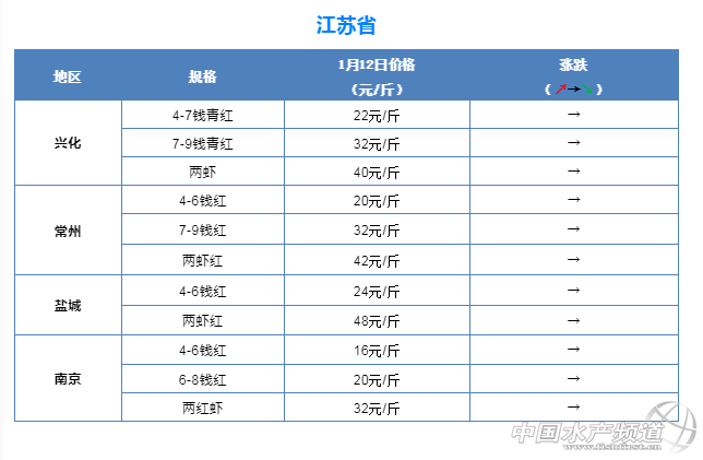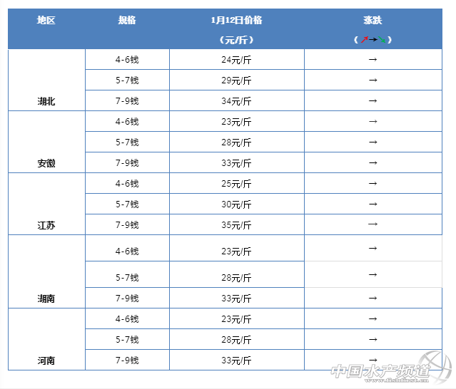 中國水產頻道原創報道, 今日小龍蝦行情再次回歸穩定,最新報價基本維持昨天的水平!扣蟹價格平穩。 蝦蟹行情每日播報 您身邊的行情顧問 歡迎關注蝦蟹前沿公眾號! 高淳成蟹三連漲!1月12日興化、高淳、泗洪、無錫成蟹價格! 文|沈君 扣蟹參考價 高淳 水陽 盤錦 成蟹行情解析 高淳 近期高淳精品蟹價整體呈上漲趨勢,今天蟹價繼續上漲,其中2母、1.8母均漲3元/斤,漲幅最大;其他中小規格普遍漲1-2元/斤;大規格蟹價基本未變。 興化 繼8日普蟹價格上漲后,近四天興化普蟹價格保持平穩,今天各規格蟹價繼續保持不變。 成蟹參考價 高淳 此報價由高淳倪老板提供 興化 此報價由興化丁老板提供 泗洪 此報價由泗洪孫老板提供 泗洪 此報價由無錫王老板提供 今日小龍蝦行情整體平穩,未出現明顯波動!1月12日小龍蝦行情 文|鄭鵬飛 1月12日全國小龍蝦塘頭價 1月12日全國小龍蝦市場批發價 【關鍵字】:小龍蝦 價格行情 水產養殖 |