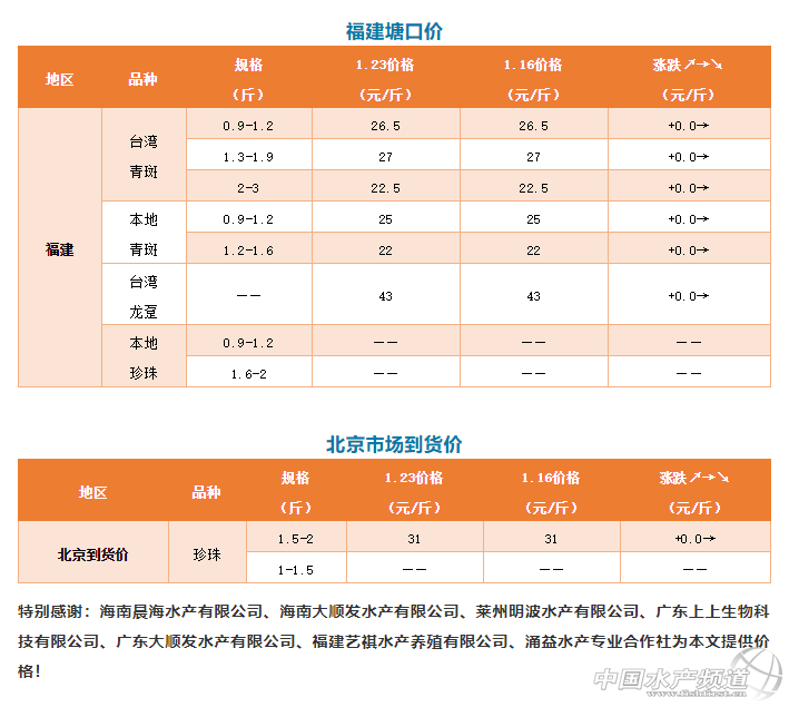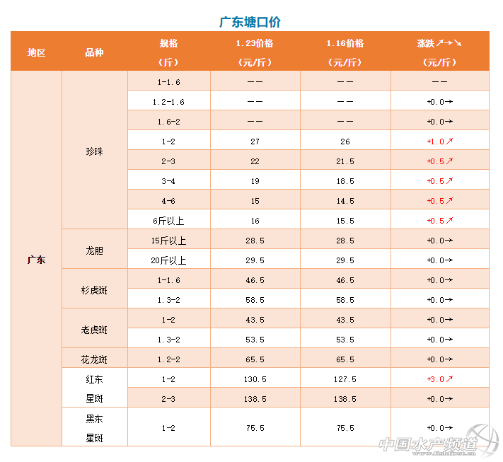 珍珠價格全線上漲,紅東星上漲3元/斤。