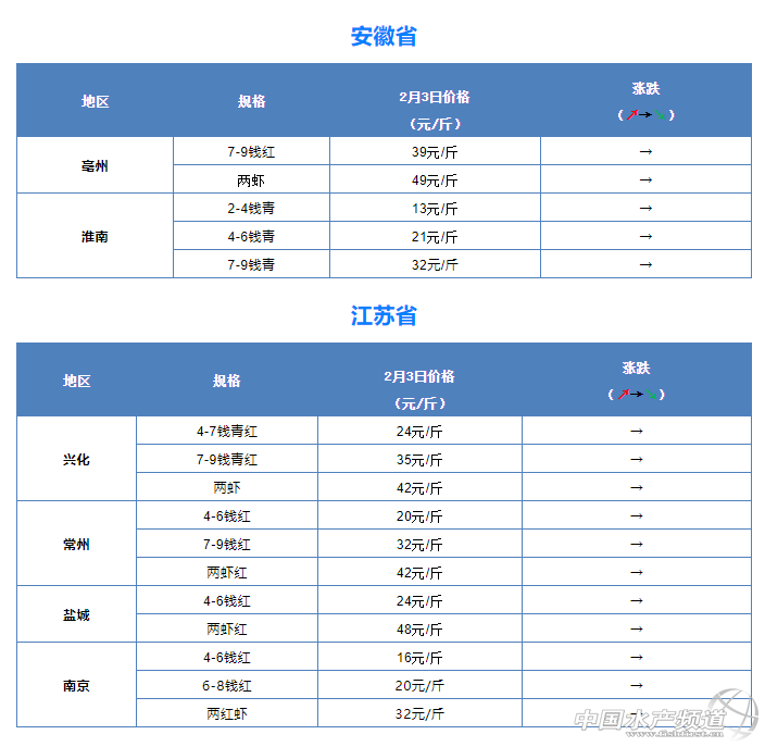 摘要: 中國水產頻道報道,2月3日全國小龍蝦市場批發價。