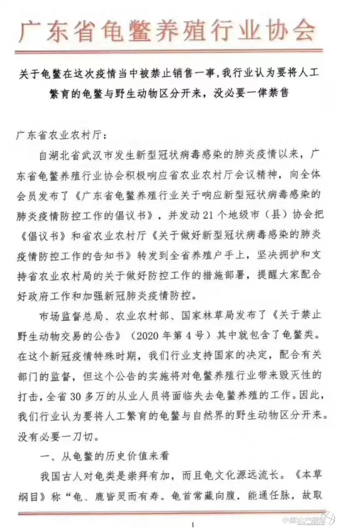 | 中國水產頻道獨家報道, 凄慘!遭一刀切,黃沙水產市場2000萬元的龜、甲魚正在“等死” 文/ 中國水產頻道 張紅 黃沙水產交易市場是廣州市乃至全國最大的鮮活水產品批發市場,是經國家農業部選址、國家計委批準立項的國家級市場,廣州市政府大力推進的市政重點建設工程項目。是廣州市菜籃子建設重點工程之一,華南地區大型水產品交易物流平臺。 春節前夕,與其他檔口商戶一樣,在黃沙水產交易市場經營龜鱉的水產商阿興(化名)就早早備足了貨,滿懷喜悅地等待春節餐飲酒店、排檔、家庭消費者登門購買烏龜、水魚這些平時一般舍不得吃的中高檔的水產品。 然而,就要春節前,新冠病毒疫病在武漢開始暴發并迅速蔓延全國。據報道最早發現病例的是來自武漢華南海鮮市場,中國工程院院士鐘南山及國家衛健委專家高福在接受采訪時均表示,并不是海鮮,而是野味,野生動物。從各方面初步流行病學分析,它實際上通過野生動物傳到人,比如說像竹鼠、獾這一類可能性比較大。在華南海鮮市場非法銷售野生動物的這些攤位也分離到了病毒,應該病毒來自野生動物,證據確鑿!與海鮮、養殖的水產品無關! 蒙!龜鱉變身野生動物,禁止轉運販賣 正當黃沙水產交易市場阿興及同行們正要趁春節消費高峰來臨,大干一場時候,卻在1月23日接到廣東省市場監督管理局公告:全省飼養殖繁育野生動場所實施隔離,嚴禁對外擴散、禁止轉運販賣。 1月25日,各商戶再次收到黃沙水產交易市場有限公司經營部通告。通告稱:黃沙水產市場嚴禁交易野生動物及其制品,包括人工飼養的野生動物,主要包括人工養殖的蛇類、鱷魚、娃娃魚、水魚、龜等。 閉市關門,落封條,2000萬龜鱉面臨“等死” 如當頭棒喝,阿興和同行們頓時被打蒙了,第二天即2月26日,所有龜鱉交易全面停止。阿興很犯愁,高價進貨的像小山的龜鱉怎么辦?所有的龜鱉都給養殖戶付清款了,現在叫養殖戶拉回池塘再養是不可能的,況且,市場已不允許進行轉運了,阿興只好關停檔口回家等消息。截止2月4日,阿興告訴筆者,市場不但未開放龜鱉交易,并且把阿興們暫時貯存的龜鱉倉庫也落了封條,隔絕了這些龜鱉后,不能喂料,它們只能自生自滅。 2月4日,暫養(貯存)龜鱉的倉庫被落封條 阿興備貨的龜鱉,很多 據阿興反饋,在黃沙水產交易市場銷售龜鱉的檔口大概在20家左右,平均每家備貨在大幾十萬到100萬元,整個龜鱉貨值約2000萬元。阿興稱,現在全部龜鱉不給銷售,不讓轉運,還落了封條,阿興他們無法接觸和飼養、照顧它們,可想而知,這些價格約2000萬元的龜鱉就只能“等死”了,預計不少檔口商家將要面臨破產。 人工養殖30年的龜鱉是野生動物嗎? 據了解,中國人工養殖龜鱉類已有30多年歷史,早已實現人工繁育。現年養殖中華鱉達32萬噸、龜4.7萬噸。全國已選育中華鱉新品種多個,年需求龜鱉類苗種6億只以上,有專家認為其主要種類早已脫離了野生動物的范疇。不少業內人士強烈發聲,建議將合法飼養的龜鱉作為人工養殖的經濟動物對待,允許上市交易。 同樣,筆者帶著我國大規模進行人工養殖的龜、甲魚,它們是否屬于飼養的野生動物的疑問,請教了行業專家浙江龜鱉研究所趙春光老師。趙老師表示,目前全國多地尤其是廣東的有關部門對龜鱉禁止銷售,這種做法很不妥。我國龜鱉產業對產品的質檢和養殖規范做的很好,因為我國龜鱉的養殖企業都按國家有關養殖標準和產品,食品安全質量標準進行生產銷售的。 何謂野生動物? 野外環境生長繁殖的動物,一般而言,具有以下特征:野外獨立生存,即不依靠外部因素(如人類力量)存活,此外還具有種群及排他性。 野生動物(Wildlife)在國際上的定義是:所有非經人工飼養而生活于自然環境下的各種動物。學界一般將野生動物界定為:凡生存在天然自由狀態下,或者來源于天然自由狀態的雖然已經短期馴養但還沒有產生進化變異的各種動物。 那么,有著30多年人工繁育養殖史的龜鱉顯然不屬于野生動物的范疇,包括飼料的野生動物。 廣東省龜鱉養殖行業協會緊急發聲: 人工繁育的龜鱉與野生動物區分開來,沒必要一律禁售 商家盼開市開售,把損失降低 |