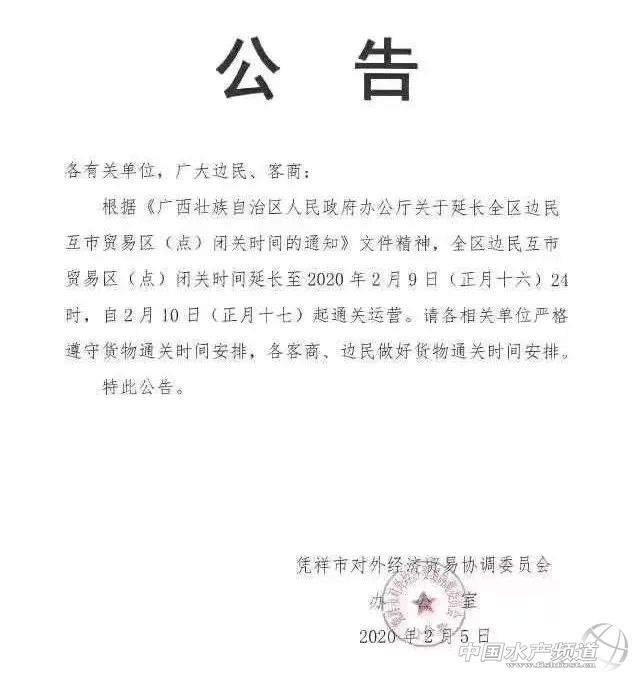 | 中國水產頻道原創報道, 受新型冠狀病毒影響,廣西壯族自治區內已關閉9個邊境市場,并延長至2月10日,將會進一步影響邊民的生活和兩國貿易往來。 文/ 海鮮指南(seafood-guide) 編輯部 受中國新型冠狀病毒疫情發展的影響,從1月31日開始,越南和廣西壯族自治區之間的口岸全部關閉,中國已經全部關閉9個邊境交易市場。目前,位于廣西壯族自治區內的峒中、里火、憑祥和東興邊貿互市關口延長關閉時間至2月10日(正月十七)。 根據憑祥市對外經濟貿易協調委員會2月5日對外的公告顯示:“廣西壯族自治區邊民互市貿易區(點)關閉時間延長至2020年2月9日(正月十六)24時,至2月10日(正月十七)起通關運營。請各相關單位嚴格遵守貨物通關時間安排。” 峒中、里火、憑祥和東興邊貿互市關口在中越水產品貿易中占有重要的地位,是蝦產品、巴沙魚、魚粉、馬面魚、海捕魚類的重要集散口岸。除了水產品之外,這些口岸還通過水果,堅果、木材、大米等中越兩國頻繁貿易商品。關口的持續關閉,將會進一步影響邊民的生活和兩國的貿易往來。 同時,越南航空已經停飛自2020年2月4日至2020年2月29日期間暫停往返于中國大陸與越南之間的所有航班。越南暫停對中國人辦理旅游簽證,持有工作簽證或者暫住證的中國人從中國大陸起飛也會被拒絕入境,從第三方國家入境也需要接受嚴格的身體檢查,在符合標準后才可以入境。 受此影響,很多年后需要前往越南的中國貿易商全部在滯留在機場或者國內,無法到越南正常開始生產。“我們就算到了越南也會被隔離14天,檢查有沒有發熱等癥狀,還需要自己掏300美金的費用,吃飯等食宿費用也要自己出。”有前往越南的中國工廠代表表示。 目前,正在籌備中的越南中國商會水產協會的代表們在積極聯系中國駐越南大使館和越南政府相關官員,溝通中國籍人員返回越南開展生產和貿易等事宜。需要返回越南的人員信息已經在2月5日下午收集完成,承報給越南中國總商會,等待進一步通知。 有在越南從事水產品貿易的代表溫馨提示到:提醒各位已經入境同胞,在機場填寫的電話號碼保持暢通,方便社區醫務人員上門檢查體溫,如果聯系不上,社區醫務會報給公安,有可能會被公安調查住在哪里,公安會配合社區醫務人員一起上門,到時候萬一抽查簽證類型之類,惹不必要的麻煩。 越南政府辦公廳也出臺相應的政策來保障中越兩國的貿易往來,同時避免新型冠狀病毒的持續蔓延。 2月3日,在由越南農業與農村發展部舉辦的“在新型冠狀病毒疫情影響的背景下促進商貿投資、發展農業生產”會議上,越南諒山省人民委員副主席阮公長告知:到2月8日(正月十五),若中國確認在邊境地區沒有新型冠狀病毒疫情,越南農產品將繼續向中國出口。 |
