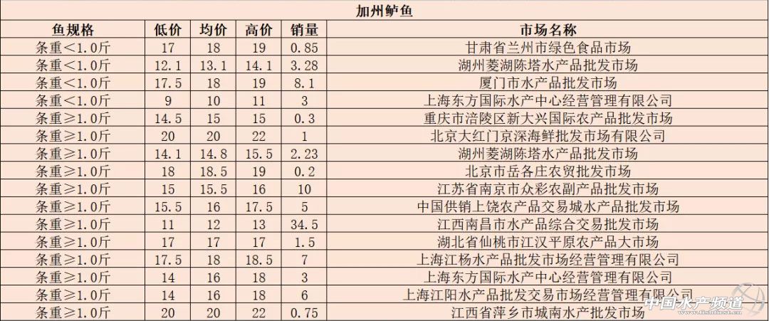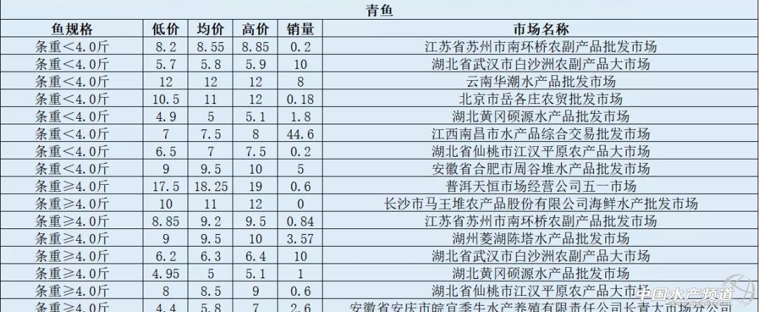 摘要: 中國水產頻道報道,2020年5月20日多品種魚各地批發市場報價