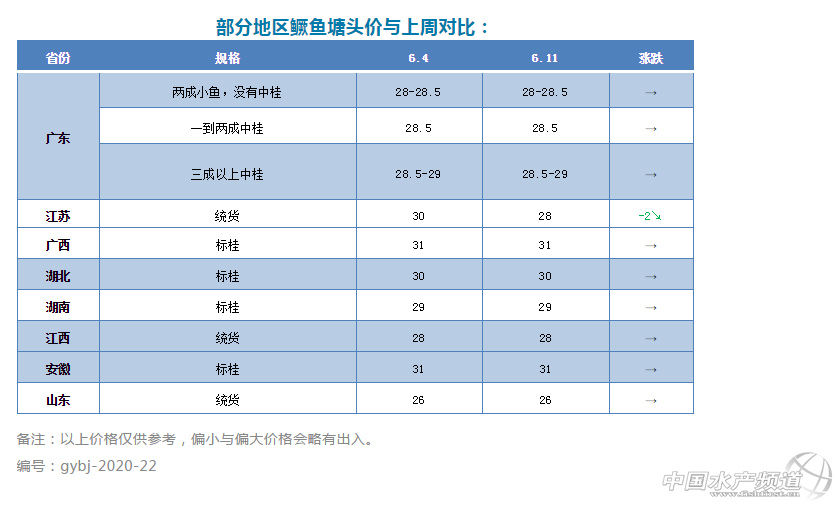 中國水產(chǎn)頻道原創(chuàng)報(bào)道, 文鱖鱸前沿李靜 最近一周,特大暴雨襲擊華南,多地出現(xiàn)魚塘水浸,部分魚塘鱖魚和餌料魚逃逸,暴雨后廣東地區(qū)鱖魚發(fā)病情況較為嚴(yán)重,尤其是這兩天很多病魚上市,慘不忍睹。 視頻:發(fā)病鱖魚 由于短時(shí)間內(nèi)較多病鱖魚上市沖擊市場(chǎng),今天鱖魚價(jià)格再次回落,廣東統(tǒng)貨開29元/斤左右,偏小魚爛市,很少人要。廣東魚多跌價(jià),受此影響,江蘇鱖魚也跌了2元/斤,今天統(tǒng)貨27-29元/斤,出魚的養(yǎng)殖戶較多,市場(chǎng)銷量非常有限。近期天氣不穩(wěn)定,雨水較多,如果持續(xù)有較多病魚上市,6月鱖魚價(jià)格則會(huì)繼續(xù)上漲發(fā)力,7月有望觸底反彈。此外,舊餌料極度缺乏,大規(guī)格新餌料魚價(jià)格太高也是目前鱖魚養(yǎng)殖戶選擇出魚的原因之一。 除了廣東和江蘇跌價(jià),其他產(chǎn)區(qū)本周價(jià)格變化不大,但價(jià)格有下行趨勢(shì)。 餌料魚:本周舊餌料魚非常緊缺,價(jià)格繼續(xù)大幅上漲,部分地區(qū)舊餌料魚甚至沒有了,新餌料魚尤其是大規(guī)格價(jià)格較高,供不應(yīng)求。 |