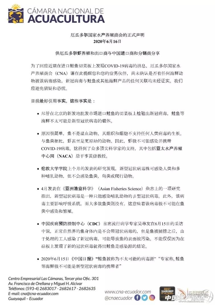 | 中國水產頻道原創(chuàng)報道, 知曉全球“蝦訊”,掌握養(yǎng)蝦動態(tài)(2020年第47期) 文/水產前沿植銀素 每周三期,精選近期全球蝦產業(yè)最新市場動態(tài),最新技術以及多方點評,養(yǎng)蝦人都在關注的精品欄目,讓你足不出戶就可以了解全球蝦業(yè)最新動態(tài) 國內活蝦價格下跌,未來或有轉機? 6月是國內白蝦各產區(qū)養(yǎng)殖沖刺期、收獲期也是價格低谷期。近一個月,活蝦塘頭價都處于穩(wěn)中有跌的狀態(tài),然而疫情反彈之后,一時間各大市場加大檢查力度,人流量減少,白蝦銷量也銳減,價格再受沖擊。根據(jù)最新報價,40頭白蝦均價僅為17元/斤,50頭均價15元/斤,養(yǎng)殖積極性大受打擊。 但是,據(jù)媒體報道消息,目前一部分餐飲店正在尋找國內白蝦(包括活蝦、冰蝦)貨源,不排除增加高需求量。究其原因,北京進口三文魚讓大部分消費者對進口產品產生陰影,有居民在消費前會先了解白蝦是本地的,還是進口的,如果被答復是本地的,會更加放心。這或將讓餐飲工作者更多考慮入手國產白蝦。 點評:進口白蝦一直以個大,價廉,易加工被餐飲屆寵幸,這一次疫情反彈,消費端習慣的改變也將決定進口蝦和本地蝦之間的輸贏。未來,國產白蝦可能會迎來消費高峰,或有助于拉升價格。 國家衛(wèi)健委發(fā)布新防護指南,有關水產品處理 6月18日,國家衛(wèi)健委發(fā)布了《低風險地區(qū)夏季重點地區(qū)重點單位重點場所新冠肺炎疫情常態(tài)化防控相關防護指南》,其中增加了食品消費者、食品從業(yè)人員等人群的防護要求,特別提出食品消費者在處理生的肉、禽、水產品等之后,要使用肥皂和流動水洗手至少20秒。不要在水龍頭下直接沖洗生的肉制品,防止濺灑污染。 另外,國家衛(wèi)健委還強調不吃生的水產品,在處理生肉、生水產品等食品時應格外小心,避免交叉污染。 柜柜查,白蝦進口檢查超嚴格 新發(fā)地市場發(fā)生疫情之后,全國各地海關、凍品市場紛紛開展對進口凍品類的大檢查,檢查的重點放在了生鮮以及進口水產品上,并且有擴大范圍的趨勢。 6月13日,天津新港海關召集集裝箱公司、貨代公司、進口商就進口凍肉、凍魚、凍蝦等冷凍食品的貨柜,執(zhí)行100%查驗,查驗項目為是否攜帶新冠肺炎病毒。6月14日起,上海海關也對到岸水生動物進行新冠病毒檢測,由系統(tǒng)抽中病毒檢測的貨物,需等待實驗室結果化驗合格后才能放行提貨。從6月15日開始,青島海關對于水產品的進口,票票做核酸檢測,結果正常后,才允許放行提貨;檢測期間不能入庫,不能提柜,預計五天左右出檢測報告……這樣的通知已經遍布全國海關口岸。 另外,多地發(fā)布加強市場銷售水產品質量安全監(jiān)管的通知,通知對各庫存、在售水產品,尤其進口水產品展開全面排查。一時間,海(水)產屆草木皆兵! 點評:近幾日,銷售端展開嚴格檢查檢測的同時,消費端也同樣人心惶惶,甚至有人聞“海鮮色變”。盡管國家相關部門連日多次為水產品澄清也無法挽回這次的嚴重損失,三文魚及進口水產品儼然成為燙手山芋。后期的消費量可能會大減,進口白蝦“前途未卜”。 國際蝦價:厄瓜多爾價格暴跌 海鮮指南消息,6月15日,與前一周相比,全球海外主產區(qū)厄瓜多爾白蝦收購價大幅下跌。從90/100到40/50規(guī)格全部下跌,其中100尾/kg跌幅高達25%。而40/50的主要規(guī)格,當?shù)毓S給蝦農養(yǎng)殖戶報價為4.27$/kg。 與厄瓜多爾相反的是,其他主要產區(qū),印尼漲勢相對明顯,泰國漲幅較小,越南、馬來西亞、印度行情較為穩(wěn)定。 厄瓜多爾發(fā)聲明應援水產品安全性 6月16日,厄瓜多爾國家水產養(yǎng)殖商會(CNA)也向中國白蝦進口商和中國白蝦經銷商發(fā)出正式聲明,應援海鮮產品的安全性! |