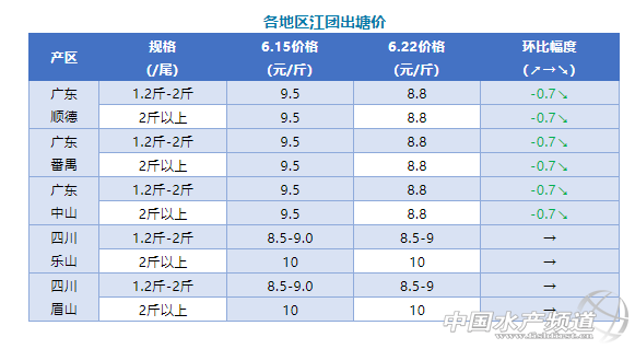 2020年6月22日各地江團最新塘頭報價
