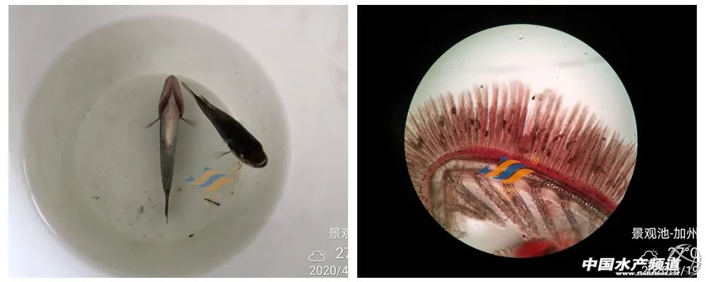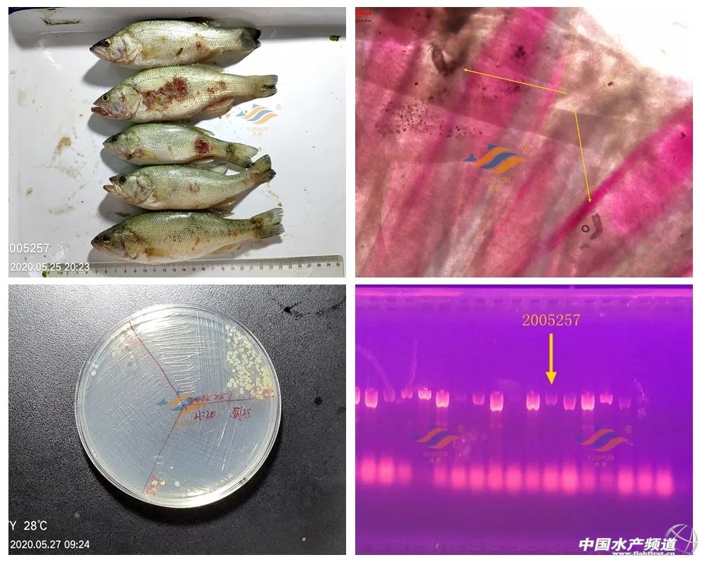 | 中國水產(chǎn)頻道原創(chuàng)報道, 據(jù)鱖鱸前沿最新報道,加州鱸又全線上漲,存塘量日益減少,最高再漲0.8元/斤,后市可能還要漲,但如果你的池塘有了這個“它”... 文/圖活寶源魚病室梁芝源、胡飛、楊紫晴、胡雄 指環(huán)蟲,隸屬于扁形動物門、單殖吸蟲綱,是加州鱸常見的一種寄生蟲,主要寄生于鰓部,在4~6月份感染率很高,但由于其感染數(shù)量不多,或常與其他病原如柱狀黃桿菌、虹彩病毒等混合感染而呈現(xiàn)復(fù)雜的病癥,很多養(yǎng)殖戶和技術(shù)員輕視了該蟲的危害,導(dǎo)致治療被耽誤、病情進(jìn)一步惡化。那么,指環(huán)蟲對加州鱸有何危害,如何診治呢?我們整理分析了今年接檢的與指環(huán)蟲感染有關(guān)的典型診治病例,以供大家參考。 一、指環(huán)蟲的直接危害 1.1刺激魚體,影響攝食,導(dǎo)致縮料。 2020年6月,廣東肇慶孔老板,使用水槽養(yǎng)殖加州鱸,3條210m3的水槽共計放養(yǎng)了8萬尾加州鱸,全長已達(dá)20cm。6月10日開始發(fā)病,攝食變差,死魚日漸增多至兩三百尾/天,遂于6月20日采樣送檢。經(jīng)全面檢測,該加州鱸感染了指環(huán)蟲和柱狀黃桿菌,虹彩病毒呈陰性。綜合考慮,建議其先殺指環(huán)蟲,再拌喂敏感抗菌藥。據(jù)后續(xù)反饋,其6月20號中午使用甲苯咪唑驅(qū)殺指環(huán)蟲,6月21號加州鱸攝食明顯改善,游邊病魚也有所減少。 左:P01,示病魚癥狀;右:P02,示指環(huán)蟲(4*10倍) 1.2損傷鰓絲,阻礙呼吸,直接致死。 2020年4月,廣東順德,網(wǎng)箱養(yǎng)殖加州鱸,2個8m3的網(wǎng)箱共計放養(yǎng)了3000尾全長為3~6cm加州鱸朝苗。4月16日,開始出現(xiàn)零星死魚,并逐漸增多至十幾尾/天,并偶見個別病魚黑身、游邊。4月19日,檢測發(fā)現(xiàn)病魚鰓部有大量指環(huán)蟲,遂使用甲苯咪唑進(jìn)行驅(qū)殺。據(jù)后續(xù)反饋,4月20日,死魚仍有十幾尾,但攝食明顯好轉(zhuǎn),未觀察到游邊病魚;4月21日,死魚迅速減少,僅發(fā)現(xiàn)幾尾;4月22日,死魚現(xiàn)象消失,攝食恢復(fù)正常。 這主要見于全長8cm以下的朝苗階段,如感染了較多的指環(huán)蟲,魚苗呼吸受阻,又遇上惡劣天氣水體溶氧含量低,就很容易出現(xiàn)死魚。 左:P03,示病魚黑身;右:P04,示鰓部大量指環(huán)蟲。 二、指環(huán)蟲的間接危害 2.1誘發(fā)爛嘴、爛鰓病。 2020年5月,佛山順德,池塘水面3畝,水深2米,有全長3cm左右的加州苗6萬尾。5月19日,分篩;5月20日,水體使用復(fù)合碘+五黃類中草藥進(jìn)行消毒;5月22日,開始出現(xiàn)爛嘴、爛尾病,死魚達(dá)200多尾;5月23日,使用所謂特效藥“紅粉”進(jìn)行消毒,效果不理想;遂于5月25日送檢。經(jīng)檢測,該加州鱸苗感染了大量指環(huán)蟲,病灶有少量柱狀黃桿菌。綜合分析,建議其使用甲苯咪唑類殺蟲藥驅(qū)殺指環(huán)蟲,并拌喂適量敏感抗菌藥。據(jù)后續(xù)反饋,殺蟲后死魚迅速減少,死魚現(xiàn)象在內(nèi)服敏感抗菌藥后完全消失,療效顯著。 對于小規(guī)格加州鱸苗種,感染指環(huán)蟲后很容易繼發(fā)感染柱狀黃桿菌而出現(xiàn)爛嘴;對于大規(guī)格加州鱸苗種和中成魚,感染指環(huán)蟲后則容易繼發(fā)感染柱狀黃桿菌而出現(xiàn)爛鰓。當(dāng)指環(huán)蟲與柱狀黃桿菌混合感染時,不殺蟲則使治療難度大大增加,即使治愈后也很容易復(fù)發(fā)。 左:P03,示病魚;右:P04,示鰓部指環(huán)蟲。 2.2誘發(fā)花身、鰓蓋潰爛等。 2020年5月,佛山順德,池塘水面5畝,水深2.5米,有全長15~20cm左右的加州苗4.5萬尾。5月25日送檢,經(jīng)交流,該塘已發(fā)病近一個星期,死魚癥狀以花身、爛身、鰓蓋潰爛為主,用過硫酸銅+碘、拌喂過治療爛身的專用藥,但效果都不理想。經(jīng)檢測,該加州鱸感染了指環(huán)蟲,內(nèi)臟未分離培養(yǎng)到疑似致病菌,蛙屬虹彩病毒呈弱陽性。綜合分析,建議其使用甲苯咪唑類殺蟲藥驅(qū)殺指環(huán)蟲,以減小刺激,并拌喂膽汁酸、五黃類中草藥等。據(jù)后續(xù)反饋,該塘主于25號傍晚潑灑高錳酸鉀+碘,但病情未見明顯好轉(zhuǎn),5月29號,殺蟲,31號,再次殺蟲,病情逐漸好轉(zhuǎn),至6月4日,死魚減至二三十尾/天。(編號:2005257) 對于加州鱸中成魚,雖然不易出現(xiàn)爛嘴、爛鰓病,但感染指環(huán)蟲后,魚體不舒服而摩擦塘基、底泥等,繼而感染細(xì)菌出現(xiàn)鰓蓋潰爛或花身、爛身,導(dǎo)致死魚。 2.3造成刺激,降低免疫力,加重病毒病的病情。 2020年6月,佛山順德,池塘水面12畝,水深1.7米,有全長10cm左右的加州鱸12萬尾。該塘原有加州鱸苗約8萬尾,于5月31日補(bǔ)投4萬余尾,次日開始發(fā)病,死魚逐漸增多,至6月11日達(dá)3000余尾/天,采樣送檢。經(jīng)檢測,該加州鱸苗感染了指環(huán)蟲,未檢出疑似致病菌,蛙屬虹彩病毒呈強(qiáng)烈陽性。綜合近期類似病例的診治經(jīng)驗,我們建議其使用甲苯咪唑類殺蟲藥驅(qū)殺指環(huán)蟲,解除寄生蟲對魚體的刺激,同時控料投喂,并拌膽汁酸、五黃類中草藥、多維等,促進(jìn)體質(zhì)恢復(fù)。據(jù)后續(xù)反饋,6月12日殺蟲(甲苯咪唑),6月13日死魚略有增多,達(dá)4000余,但游邊魚明顯減少;6月14日,死魚約1200條;6月15日,死魚400余條;6月16日,死魚100余條,病情基本得到控制。 蛙屬虹彩病毒病是加州鱸常見的一種病毒病,在3~5月發(fā)病率很高;該病毒的毒力相對較弱,其致死率與水質(zhì)、寄生蟲等關(guān)系較大。如有指環(huán)