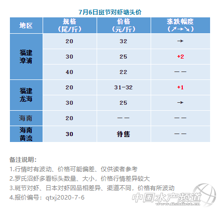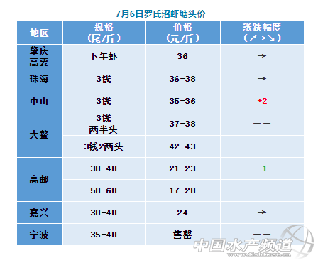 | 中國水產頻道原創報道, 蝦價止跌,部分區域蝦價回暖 文/水產前沿何鴻浩 一周要聞 1、蝦價止跌,甚至有所回升 近日,羅氏沼蝦、斑節對蝦價格止跌,多地區價格都與上周持平,甚至少部分區域斑節蝦價格稍有回溫。此外,白蝦在江浙地區也有較大漲幅。整體而言,市場環境開始穩定,后市有望回暖。 2、羅氏沼蝦小蝦跌,大蝦漲 大規格羅氏沼蝦價格維持穩定,甚至有些許上漲。中山從業者表示,近期大蝦漲價,小蝦跌價,標頭夠大的可以超過40元,但市場上大蝦并不多,標頭去到1兩3就很不錯了。江蘇業者則表示,高郵、嘉興價格的蝦比較多,價格也都是在跌,但30條以上規格的蝦價格還是稍高。 3、斑節對蝦價格谷底回升 本周福建斑節對蝦價格些許回升。福建從業者表示,現在價格已經在谷底了,想跌也沒辦法跌了,只會持續震蕩,一直到消費市場回暖、或者度過上市期之后。龍海從業者表示,近期有養殖戶遇到黑鰓現象,原因多是藻類堵塞,建議養殖戶要妥善控藻。 羅氏沼蝦 |