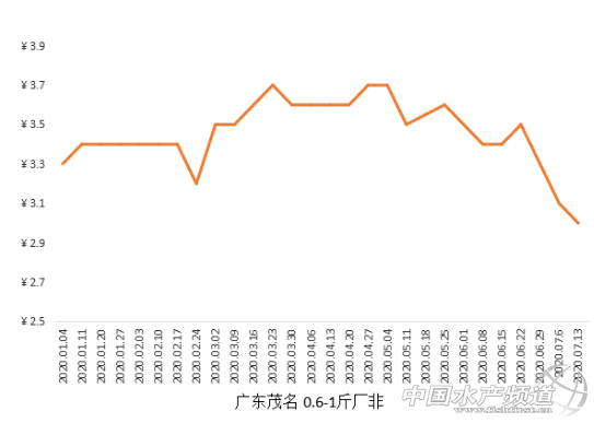 | 中國水產(chǎn)頻道原創(chuàng)報(bào)道, 一些工廠取消小非加成,頂?shù)米〉酿B(yǎng)戶出魚意愿下降,更傾向養(yǎng)大出1斤上規(guī)格廠非 文/水產(chǎn)前沿葉豐齊 水產(chǎn)前沿專業(yè)為你推送羅非魚 最新價(jià)格行情及行業(yè)新聞、各類資訊。 同時(shí)歡迎行業(yè)人士踴躍爆料,請掃二維碼聯(lián)系 代表產(chǎn)區(qū)羅非魚行情走勢 整體行情綜述 本周各產(chǎn)區(qū)羅非魚行情基本平穩(wěn),部分地區(qū)小有波動(dòng)。海南地區(qū)廠非價(jià)格保持,塘頭現(xiàn)金收購價(jià)較上周下調(diào)0.1元/斤,市場非價(jià)格不變;珠三角地區(qū),珠海、新興、恩平和高要地區(qū)羅非價(jià)格皆保持不變,東莞0.8斤上規(guī)格外省車開價(jià)下調(diào)0.5元/斤;粵東地區(qū)惠州1.2-2斤規(guī)格走本地市場羅非早上車開價(jià)下調(diào)0.2元/斤,下午車以及1斤上規(guī)格走外省市場羅非價(jià)格皆不變,揭陽和汕尾地區(qū)羅非價(jià)格亦皆保持穩(wěn)定;粵西地區(qū)湛江和茂名廠非0.6-1斤規(guī)格下調(diào)0.1元/斤,1-1.6斤規(guī)格廠非價(jià)格上調(diào)0.05元/斤,1.3-1.5斤上規(guī)格市場非價(jià)格與上周持平;廣西地區(qū)北海0.6斤上規(guī)格廠非上調(diào)0.05元/斤,小非成數(shù)高則上調(diào)0.2元/斤,其他規(guī)格廠非及市場非皆保持上周價(jià)格,南寧和柳州羅非行情皆無變動(dòng);云南地區(qū)昆明及紅河1-2斤規(guī)格羅非亦皆與上周價(jià)格保持一致。 各產(chǎn)地行情分析 海南地區(qū):現(xiàn)時(shí)存塘的大多是0.6-0.7斤規(guī)格,工廠每天仍可收購200萬斤左右,0.6-1斤規(guī)格2.8元/斤,1斤以上規(guī)格3.8元/斤,皆同上周價(jià)格,而1斤上塘頭現(xiàn)金收購價(jià)3.4-3.6元/斤,環(huán)比上周下調(diào)0.1元/斤,同規(guī)格走西線市場羅非塘頭價(jià)3.5元/斤,保持上周價(jià)格。 珠三角地區(qū):珠海0.6斤上廠非底價(jià)2.5元/斤,1斤下成數(shù)高的3.5元/斤,同上周行情;1.3斤上規(guī)格市場非4元/斤,同上周,個(gè)別經(jīng)銷商會(huì)補(bǔ)貼魚價(jià)到4.1-4.2元/斤,而5-9斤大羅非塘頭價(jià)8.5元/斤,仍與上周行情一致;東莞1.3-2斤以上規(guī)格水車走珠三角市場羅非塘頭價(jià)3.7元/斤,同上周價(jià)格,也有些塘出3.6元/斤,一車裝1500斤-3000斤左右,非常難走量,而6兩上廠非2.8元/斤,同上周,另外外省車抓0.8斤上統(tǒng)貨3元/斤,環(huán)比上周下調(diào)0.5元/斤,據(jù)悉一車能走15000斤,但仍是一周一次;恩平1.5斤以上規(guī)格市場非3.8元/斤,維持上周價(jià)格,比較爛市;新興1.7-1.8斤上規(guī)格市場非到手價(jià)3.8元/斤,1.2-1.3斤上市場非3.4-3.6元/斤,皆保持上周價(jià)格;肇慶1.3斤上市場非塘頭價(jià)3.8元/斤,0.6-1斤規(guī)格廠非2.6-3.1元/斤,1-1.6斤規(guī)格3.55元/斤,1.6斤上3.3元/斤,皆和上周一致。 粵東地區(qū):惠州1.2-2斤規(guī)格走本地市場羅非早上車3.6元/斤,環(huán)比上周下調(diào)0.2元/斤,一次5千斤左右,而下午車3.8元/斤,同上周價(jià)格;外省水車抓1斤上規(guī)格羅非3.4-3.5元/斤,同上周,出價(jià)依然偏低,出魚量和頻率皆不及本地市場車;揭陽和汕尾1斤以上規(guī)格廠非(走汕尾本地凍廠)塘頭價(jià)3.1元/斤,1-1.2斤上規(guī)格市場非3.6-3.7元/斤,皆保持上周行情。 粵西地區(qū):湛江、茂名兩地1.3斤以上規(guī)格市場非4-4.1元/斤,保持上周價(jià)格;加工廠方面,之前0.6-1斤規(guī)格小非多有成數(shù)加成價(jià)格高,養(yǎng)的人多,放苗密度偏高,如今高溫期小非多也不再好市,有些廠取消加成,愿意出小非的養(yǎng)戶減少,除非池塘密度太大頂不住高溫天氣,不過,因目前小非多,1斤上規(guī)格魚反而相對較少,價(jià)格或略有上調(diào);0.6-1斤規(guī)格廠非2.9-3元/斤,環(huán)比上周下調(diào)0.1元/斤,1斤上規(guī)格3.75-3.8元/斤,環(huán)比上周上調(diào)0.05元/斤;同時(shí),雙湖以2.9-3.3元/斤收0.6-1斤規(guī)格(小非加成到3.3元),而1-3斤3.75元/斤,而滿鮮收0.6-1斤規(guī)格3-3.4元/斤(小非加成到3.4),1-1.6斤3.8元/斤,1.6斤以上超3成扣款。另外飼料廠合同魚0.6-1斤規(guī)格3.1-3.6元/斤,非合同魚3-3.5元/斤,1斤上規(guī)格3.8元/斤,超規(guī)格無扣錢或拒收。 廣西地區(qū):北海0.6-1斤規(guī)格廠非3.1-3.15元/斤,環(huán)比上周上調(diào)0.05元/斤,小非超6成可加成到3.3元/斤,環(huán)比上周上調(diào)0.2元/斤,而1斤上規(guī)格廠非3.8元/斤,市場非1.2-2.2斤統(tǒng)級4.2元/斤,皆同上周價(jià)格;南寧1.5斤上規(guī)格羅非4.8元/斤,同上周;柳州1.5-2斤規(guī)格5.1-5.2元/斤,保持上周行情。 云南地區(qū):存塘規(guī)格魚少,新苗大多在0.1斤左右,當(dāng)?shù)亓魍枯^大,供求基本無壓力,價(jià)格保持穩(wěn)定;1-2斤規(guī)格羅非昆明塘頭價(jià)4.5元/斤,批發(fā)價(jià)4元/斤,飼料廠收魚加1000元/噸,紅河塘頭價(jià)4.5元/斤,批發(fā)價(jià)5元/斤,皆與上周一致。 |