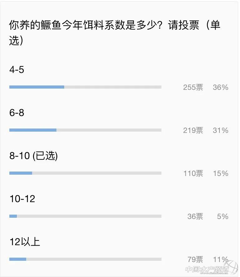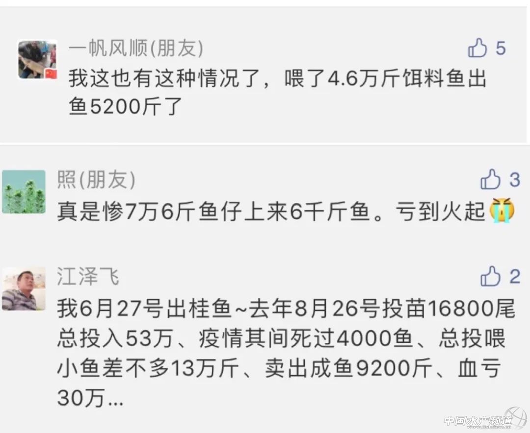 | 中國水產頻道原創報道, 養殖成本高達40元/斤!鱖魚養殖餌料系數超過8的約31% 文 鱖鱸前沿 李靜 一周要聞 昨天,鱖鱸前沿發了一篇關于今年鱖魚養殖餌料系數嚴重偏高的問題引起了行業廣泛關注和討論,有一些人甚至不敢相信12斤活餌長一斤鱖魚,但事實上,今年餌料魚超過10的有相當一部分。昨天鱖鱸前沿發起了一個鱖魚養殖餌料系數的投票,全國各地共有約700人參與,其中餌料系數超過8占比31%,餌料系數超過10的有16%,超過12的也有11%。 也有網友留言表示,自己喂了7.6萬斤魚仔才出了6000斤鱖魚,還有網友投喂13萬斤魚仔,僅出成魚9200斤,餌料系數超過10的案例比比皆是,可以想象,餌料魚按照平均4元/斤來算的話,有1/3的養殖戶今年鱖魚養殖成本都在40元/斤以上,而今年鱖魚長期在30元/斤以下徘徊,可以說是出一塘鱖魚就要虧一塘,基本上每塘魚都要虧損20-30萬元或以上。 一周行情 最近一周,全國鱖魚價格相對來說波動不是很大。廣東鱖魚價格穩中有降,今天鱖魚塘頭訂魚價格在30-30.5元/斤左右,比上周同期跌了1元/斤左右。主要是由于現在氣溫太高,鱖魚瘦身體質弱,發病的鱖魚很多,所以導致價格再次下滑。據流通商反映,最近市場銷量一般,大魚相對來說比較緊缺,偏小魚多,預計偏大規格鱖魚有上漲空間。 江蘇今天統貨開32元/斤,雖然比上周漲了1元/斤,但市場行情還是不好,銷量不大。今天湖北標桂34元/斤,持穩;湖南、廣西、江西地區鱖魚價格也暫時穩定,當地基本沒什么魚了。 餌料魚:本周餌料魚整體穩定,土鯪價格多在3.8-4元/斤,麥鯪價格多在2.9-3元/斤,由于麥鯪比土鯪便宜得多,所以現在較少人喂土鯪。 |