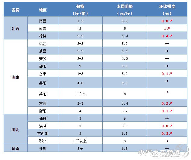 | 中國水產頻道原創(chuàng)報道, 淡水魚養(yǎng)殖戶春天來了,多條魚價漲不停,湖北草魚最高上漲1元/斤! 文/ 水產前沿 鄭鵬飛 一周要聞 魚價全線上漲!最近全國多個品種魚價出現(xiàn)暴漲,其中加州鱸突破20元/斤,一周內最高漲3.5元/斤;珠海海鱸最高飆漲到12元/斤;廣東地區(qū)鱖魚賣到33元/斤;生魚、黃顙魚、叉尾、鯽魚、鳊魚均出現(xiàn)大漲;草魚行情更是幾乎全線上漲! 湖南長沙多個品種魚價快速上漲 據最新了解,目前湖北隨州地區(qū)3斤的草魚塘頭賣到6.8元/斤,一周內上漲1元/斤;洪湖地區(qū)賣到5.6元/斤,上漲0.6元/斤。 今天湖南長沙3斤的草魚塘頭價已經賣到5.5元/斤,上漲0.3元/斤;婁底地區(qū)賣到6.1元/斤;常德地區(qū)3斤以上的賣到5.6-5.7元/斤。 江西新余地區(qū)3斤左右的草魚塘頭賣5.4元/斤,南昌地區(qū)3斤以上的草魚塘頭價已經突破6元/斤。 浙江衢州地區(qū)3斤的草魚塘頭賣6.2元/斤,上漲0.8元/斤;福建南平地區(qū)塘頭賣5.9元/斤,上漲0.6元/斤;河北唐山塘頭賣到5.9元/斤,較之前上漲0.4元/斤;廣東中山地區(qū)3斤起的平均4斤的草魚塘頭賣5.6元/斤,13斤的脆肉鯇塘頭已經賣到10元/斤。 江西新余草魚價格開始上漲 湖北洪湖草魚價格開始上漲 廣東中山草魚價格開始上漲 養(yǎng)殖戶看好后期魚價,投苗比較積極,近期草魚流通明顯加快。目前,北京的水產市場也已經開放,北方市場的需求量逐步加大,接下來魚價能否繼續(xù)漲呢?歡迎留言分享! 行情分析 華南地區(qū) 本周華南地區(qū)草魚塘頭價整體上呈現(xiàn)上漲的勢頭,流通商表示最近魚很好走。受洪水的影響,養(yǎng)殖戶看好后期魚價,近期大家投苗比較積極,草魚苗種和成魚都有上升的跡象。據了解,目前珠三角地區(qū)草魚的存塘魚不足4成,中山地區(qū)3斤起的平均4斤的草魚塘頭賣5.6元/斤,13斤的脆肉鯇塘頭已經賣到10元/斤。本周廣西地區(qū)的草魚行情還是以穩(wěn)定為主,目前桂林地區(qū)3斤的草魚還是繼續(xù)維持在5.8-6元/斤。據了解,目前南寧地區(qū)3斤以上草魚的存塘不到3成,后市魚價還是值得期待。 華中地區(qū) 雖然受到洪水影響局部地區(qū)仍有超低價拋售的現(xiàn)象,但是本周華中地區(qū)的草魚整體行情已經開始呈現(xiàn)明顯的上漲勢頭。 據養(yǎng)殖戶介紹,目前湖北隨州地區(qū)3斤的草魚最新塘頭價賣到6.8元/斤,一周內上漲了1元/斤。最近仙桃還有一些地區(qū)洪水壓力依然很大,泄洪導致不少養(yǎng)殖戶搶著賣魚,加上不少捕撈的魚在市場上低價拋售,近期草魚的市場行情還是很亂。有洪湖地區(qū)養(yǎng)殖戶反饋,目前3斤左右的草魚最新塘頭價賣到5.6元/斤,上漲了0.6元/斤以上。 最近湖南地區(qū)草魚開始有明顯的上漲。據了解,目前長沙地區(qū)小草魚塘頭賣5.2元/斤,長沙市場可以賣到5.8元/斤;今天3斤的草魚塘頭價已經賣到5.5元/斤,上漲0.3元/斤。婁底地區(qū)3斤的草魚塘頭賣到6.1元/斤。常德地區(qū)3斤的草魚塘頭賣5.3-5.4元/斤,3斤以上的賣到5.6-5.7元/斤。了解到,今年湖南草魚存塘同比去年減少了15%以上,后期行情值得期待。 本周江西地區(qū)的草魚塘頭價也是出現(xiàn)了明顯上漲。目前,新余地區(qū)3斤左右的草魚塘頭賣5.4元/斤,南昌地區(qū)3斤以上的草魚塘頭價已經突破6元/斤,養(yǎng)殖戶表示最近兩天草魚塘頭價上漲很明顯。 據了解,目前河南地區(qū)新魚規(guī)格大多在1.5斤左右,大魚存塘很少,最近外省的魚車有明顯增多,大規(guī)格草魚上漲明顯。 華東地區(qū) 本周華東地區(qū)的草魚塘頭價同樣出現(xiàn)了明顯的上漲。從養(yǎng)殖戶了解到,目前浙江衢州地區(qū)3斤的草魚塘頭賣6.2元/斤,較上周上漲了0.8元/斤。福建南平地區(qū)3斤的草魚塘頭賣5.9元/斤,上漲0.6元/斤;三明地區(qū)目前還是基本維持在5.6元/斤;閩江地區(qū)已經賣到5.9元/斤,上漲0.1元/斤。 其他地區(qū) 本周華北地區(qū)草魚塘頭價也開始漲了。據了解,最近北京的水產市場已經放開,對周邊地區(qū)的草魚費需求明顯增加。最近河北唐山地區(qū)3斤的草魚最新塘頭價賣到5.9元/斤,較之前上漲0.4元/斤;天津寶坻3斤的草魚賣到5.8元/斤。 本周東北和西北地區(qū)的草魚行情整體上還是保持穩(wěn)定,暫時沒有出現(xiàn)明顯變化。從養(yǎng)殖戶了解到,目前遼寧沈陽地區(qū)2-3斤的草魚賣6.1-6.2元/斤,暫時沒有出現(xiàn)明顯變化。從流通商了解到,目前甘肅蘭州市場3斤的草魚最新報價維持在6.8元/斤,流通商表示預計很快也要漲。 最近西南地區(qū)的草魚行情出現(xiàn)了小幅下滑。據流通商介紹,最近四川成都地區(qū)3斤以上的草魚塘頭價很多已跌至6元/斤以下,目前三岔湖地區(qū)3斤左右的草魚最新塘頭價賣5.8元/斤,下滑了0.2元/斤。 |