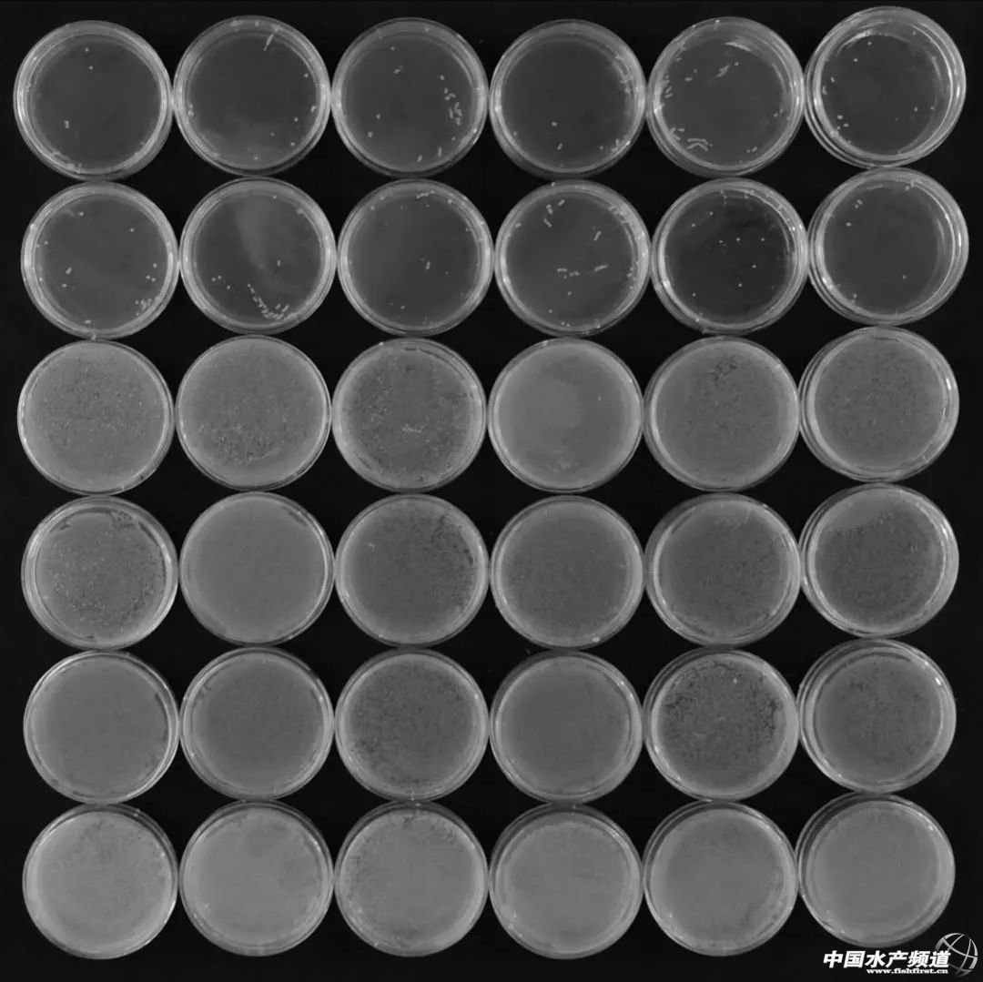| 中國水產頻道原創報道, 二氧化氯片劑使用方法對其養殖水體中消毒效果之比較 文/ 華中農業大學 陳昌福、武漢科研時代生物技術有限公司 周鑫軍 在水產養殖過程中,采用各種消毒劑實施所謂的“四消”(苗種、餌料、工具和食場消毒),已經是我國水產養殖業者對水產養殖動物疾病防控中采用的常規措施。 二氧化氯(分子式為ClO2)雖然作為“國標漁藥”已經被農業農村部移出了清單,但是,不少漁藥制售企業將其作為“非藥品”,迄今為止依然在水產養殖中被大量地使用著。 在水產養殖過程中使用的ClO2制劑大致有3種劑型,即水劑、粉劑和片劑。利用ClO2水劑對養殖水體進行消毒時,只需要在測量水體后根據養殖水體體積,直接潑灑ClO2水劑至養殖水體中達到一定藥物濃度即可;利用ClO2粉劑對養殖水體進行消毒時,就需要先用少量池水將ClO2粉劑稀釋、活化15分鐘 左右后,再將其潑灑在養殖水體中達到一定藥物濃度;而采用ClO2片劑時,養殖業者大多是根據產品說明書中規定的用藥劑量,采用直接將其ClO2片劑拋灑在養殖水體中的用藥方法。 為了探討不同劑型的ClO2制劑的使用方法對養殖水體消毒效果的影響,本試驗利用檢測消毒后養殖池水中可培養細菌數量變化的方法,對ClO2制劑的使用方法與消毒效果的關系進行了初步評價,F將結果報告如下: 1.材料與方法 1.1池塘水體消毒試驗地點及條件 本試驗在武漢市新洲區汪集鎮魚苗孵化場的養殖池塘中進行。該養殖池塘7畝,水深2.5米左右。試驗過程中,于18:30測定1.0m水深處的水質指標為亞硝酸鹽低于0.05mg/L、氨態氮0.2mg/L、溶解氧6.5mg/L以上,pH 8.5。試驗期間水溫變化范圍26.0~27.0℃。 為了保證消毒劑的藥物濃度在養殖水體中的準確性,采用PVC板制作了12個規格一致的內口徑邊長60厘米的正方形、高度2.48米的圍隔(圖1)。 圖1.示邊長60厘米、高2.48米的正四方形的PVC板圍隔 圍隔在使用前,將其放置在養殖池塘中浸泡了4天。正式試驗時,將圍隔以站立的形式放置在養殖池塘中(圖2)。精確測定圍隔中的池水體積后,根據圍隔內水體的體積計算出用藥量,定量使用幾種消毒劑。 圖2.設置在養殖池塘中的PVC板圍隔 1.2供試藥物及其用藥劑量 用于本試驗的2種來自不同公司生產的ClO2片劑,以編號Ⅰ、Ⅱ號片劑表示,另外2種ClO2粉劑,以編號Ⅰ、Ⅱ粉劑表示,共4種供試消毒劑藥物。 對ClO2片劑和ClO2粉劑,臨用前打開包裝袋,根據圍隔內水體的體積計算用藥量。將編號為Ⅰ、Ⅱ號的2種ClO2片劑,分別將每種片劑直接拋灑在2個圍隔內,而將在Ⅱ號ClO2片劑粉碎后,溶解在水中并活化15分鐘后,潑灑在2個圍隔中。將編號為Ⅰ和Ⅱ號ClO2粉劑用池塘水將藥物稀釋、活化15分鐘后,潑灑在圍隔內水體中,使不同圍隔內水體中的ClO2片劑或者粉劑的濃度,均分別達到0.90mg/L的濃度。 1.3消毒效果的監測 在圍隔中用藥結束后,分別在經過1.5小時和3小時后,在圍隔內利用采水器分別在離水面0.3米、1.0米和2.0米處采集水樣(圖3),同時在圍隔外的池塘中同樣水層采集水樣,作為為用消毒劑的對照組。 圖3.用采水器在消毒后的圍隔水體中采集水樣 將采集的水樣盛裝在經過高壓滅菌處理的玻璃試管內,并置放與帶有冰塊的采樣箱內帶回實驗室,在30分鐘時間內完成從采水樣到在培養基上接種細菌的過程。 采集的水樣帶回實驗室后,在無菌條件下從每個水樣中吸取500.0μL,在滅菌后的試管中用滅菌生理鹽水進行10倍、100倍、1000倍和10000倍的系列稀釋。分別從稀釋后的水樣中吸取50.0μL池塘水,接種在盛有BHIA培養基的培養皿中,每個稀釋度的水樣接種3個培養皿。接菌后的培養皿放在28℃的恒溫培養箱中,培養24小時后,通過計數培養皿中出現的菌落數,評價各種消毒劑在池塘水體中的殺菌效果(圖4)。 圖4.通過細菌培養法判斷不同ClO2制劑在池塘水體中的消毒效果 2.結果 2.1用藥1.5小時后水體中細菌數量的變化 在圍隔中投放ClO2制劑消毒劑結束后的1.5小時,分別從用藥濃度為0.9mg/L的ClO2粉劑組、ClO2片劑組和對照組各圍隔水體中,用采水器采集池水,帶回實驗室對養殖水體中細菌進行細菌培養養的結果如圖1所示。由圖1可以看出,當ClO2制劑的用藥濃度為0.9mg/L的條件下,稀釋并活化15分鐘后潑灑在圍隔中的ClO2粉劑,在潑灑用藥1.5小時后,顯示出了對圍隔水體中細菌良好的殺菌效果;而直接拋灑在圍隔水體中的ClO2片劑,與未用藥物的對照組相比,未顯示出明顯的殺菌效果。 圖1.對不同ClO2制劑消毒1.5小時后養殖水體中細菌的培養結果 注:“A”代表未用消毒劑的對照組;“B”代表片劑用藥組;“C”代表ClO2粉劑用藥組;“Ⅰ”代表各組的第1個圍隔,“Ⅱ”代表各組的第2個圍隔;“Q”代表將水樣經過了1000倍的稀釋;“W”代表將水樣經過了10000倍的稀釋;“a”代表30厘米水深處采取的水樣,“b”代表100厘米水深處采取的水樣,“c”代表200厘米水深處采取的水樣。 2.2用藥3小時后水體中細菌數量的變化 在圍隔中投放幾種ClO2制劑結束3小時后,分別從各圍隔水體中,用采水器采集池水,帶回實驗室對水體中細菌進行細菌培養的結果如圖2所示。由圖2可以看出,當ClO2制劑的用藥濃度均為0.9mg/L的條件下,將ClO2粉劑稀釋并活化15分鐘后潑灑在圍隔中的2個試驗組,以及將ClO2片劑粉碎后稀釋并活化15分鐘后潑灑在圍隔中的1個試驗組,在潑灑用藥3小時后,均顯示出了對圍隔內水體中細菌的良好的殺菌效果;而將ClO2片劑直接