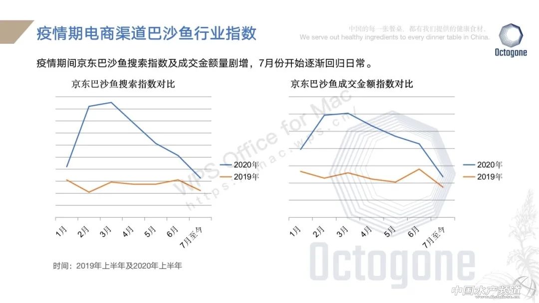 | 中國水產頻道原創報道, 越南巴沙魚產業在全球新冠肺炎疫情背景下又是如何確保工廠安全生產出口的呢?中國的進口巴沙魚市場現狀如何? 文/ 海鮮指南(Seafood-guide) 沈基文 7月28日,海鮮指南直播間與越南永環集團董事長張麗卿通過視頻的方式連線,介紹了越南巴沙魚產區的最新情況,這也是自新冠肺炎疫情在全球爆發以來,越南巴沙魚生產商首次露面,向中國市場介紹最新的產業現狀;隨后,越南永環集團中國首席代表、歐肽貢(廣州)貿易有限公司總經理陳新東在海鮮指南直播間現場深度分享中國的巴沙魚市場進展。 2020年上半年,越南出口了多少巴沙魚到全球各個國家,其中,各個巴沙魚消費國目前訂單恢復情況怎么樣,越南巴沙魚產業在全球新冠肺炎疫情背景下又是如何確保工廠安全生產出口的呢?中國的進口巴沙魚市場是什么樣子的?一起來看看直播回顧吧! 2020年6月越南巴沙魚總產量同比下降約5%,目前原料價為歷史新低,2020年后期或上漲 張麗卿談到,抗擊新冠肺炎已成為越南的頭等大事,越南永環積極按照國家法規與該流行病做斗爭。從疫情爆發初期,永環就發布了嚴格的防疫計劃,例如對工廠大面積消毒,工人與客戶100%體溫檢測,我們冷凍海鮮(水產)加工廠沒有任何污染。 越南永環防疫措施及生產車間情況 對比2019年同期,2020年1-6月份越南巴沙魚出口至全球市場的出口額有所下降。但是,全球最大的兩個巴沙魚消費國——中國和美國在2020年1-6月的市場占比分別從27%升至31%、從15%升至16%。2020年1-6月,越南巴沙魚出口到中國的數量下降了18%,美國下降了25%,歐盟下降了36%。 越南永環集團董事長張麗卿提到,2020年6月,越南巴沙魚總產量同比下降約5%。目前,原材料價格一直處于低位,給養殖戶和生產商帶來了一些影響和損失;海水倒灌已成為湄公河南部地區的一個問題,成為巴沙魚的養殖產量減少的原因之一;值得注意的是,由于新冠肺炎帶來的市場不確定性,在今年前幾個月,養殖戶減少了養殖量;這可能導致2020年后期和2021年初期的供應短缺。 張麗卿表示,由于新冠肺炎疫情影響,越南巴沙魚總出口量預計比2019年要低,2020年第二季度,由于全國范圍的封鎖,歐盟、中國、墨西哥和其他全球市場受到的沖擊最為嚴重。盡管目前全球市場仍有一些不確定性,部分市場正表現出一些積極的跡象,其中,中國在4月下旬重新開放后,恢復了對巴沙魚的購買,美國、歐盟等其他國家正計劃重新開放。 “不管怎樣,對待第二波新冠肺炎,相信消費者這一次不會如此恐慌,需求也不會那么混亂。目前,原料價格達到了歷史新低點。而由于市場恢復時可能出現的供應短缺,價格在2020年后期可能會上升。”張麗卿說。 2020年3-6月中國對越南巴沙魚進口回升,7月邊貿占比降至11% 越南巴沙魚出口至中國方面的進展以及中國市場巴沙魚產業恢復情況,越南永環集團中國首席代表、歐肽貢(廣州)貿易有限公司總經理陳新東也在海鮮指南直播間現場作了深度分享。 2020年1-2月,受疫情的影響,中國對越南巴沙魚進口量大幅下降,3-6月,中國對越南巴沙魚進口量開始回升。 陳新東在視頻里也解釋了該數據變化的原因:“主要的原因不排除市場有人操作囤貨,目前中國市場的冷庫確實有不少的貨物;巴沙魚整體價格的下跌有助于市場推進該產品在食品中的應用,加速了巴沙魚進口數量的恢復;中國經濟受疫情影響,人們對未來收入預期不好,巴沙魚屬民生類產品,因此巴沙魚在2020年預期樂觀;越南疫情控制較好,國內疫情反復,雖然對整體進口海鮮水產有所影響,但是總體對于巴沙魚行業從業者來講,相對于其他國家的水產品,安全系數高,加之國內洪澇影響,國產魚價格暴漲,巴沙魚未來的整體發展趨勢良好。” 除此以外,中國進口巴沙魚正關與邊貿的占比也在發生變化。“從6月份來看,巴沙魚邊貿占比為13%左右,我們了解到7月份上旬最新的數據,邊貿占比降低為11%左右。加之最近天津港口海關開始抽檢巴沙魚包冰率的問題,越南水產協會嚴格規定并執行,巴沙魚產品包冰率不能高于20%,總體有利于巴沙魚行業朝向正規、健康的行業發展。”陳新東說。 現在出口到中國的主要的出口商有哪些?在海鮮指南直播間里,陳新東分享提到,6月份越南巴沙魚生產商出口至中國巴沙魚金額達3166萬美金,前十名的工廠有永環、高登、南越、長江、IDI等,前十個工廠占據了56.5%的出口額。其中永環占比7.58%,位居第一。 中國市場巴沙魚流通各渠道恢復情況:餐飲逐漸恢復,零售渠道增勢喜人 目前,在中國,巴沙魚流通多依附于餐飲市場,隨著餐飲的恢復,整體情況也在逐漸好轉。但是疫情反復不定,受諸如海關核酸檢測周期長、各個地區批發市場政策變化快、終端客戶不穩定等因素的影響,多地的批發流通商損失較大,目前恢復情況較慢。 2月疫情爆發后,餐飲行業遭遇斷崖式下跌,市場一片蕭條,到處可見餐飲店鋪轉讓的信息。據國家統計局發布數據,2020年1月-5月,餐飲收入11346億元,下降36.5%。 隨著中國疫情的好轉,中國餐飲已經慢慢恢復,加之外賣火爆,據美團研究院數據顯示,預計2020年線上餐飲外賣在中國餐飲大盤中的占比將超過20%。“而酸菜魚、烤魚外賣就是其中的主力。總體而言,盡管餐飲恢復緩慢,但是巴沙魚是餐飲食材中恢復得比較快的!” 疫情期間電商零售渠道的巴沙魚流通增勢喜人,在京東,巴沙魚搜索指數及成交金額量