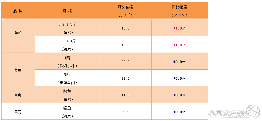 文/ 珠海海龍、水產(chǎn)前沿 何鴻浩 中國水產(chǎn)頻道原創(chuàng)報(bào)道,鱸魚:冰車價格變化不大,與上周持平;水車價格因舊魚級魚存塘減少和新魚未上市的原因,價格上漲。冰車價格:1.6斤以下,11元;1.6-1.7斤,10.7元;1.7-1.8斤,10.4元;1.8-1.9斤,10.1元;1.9-2.0斤,9.8元。 立魚:市場立魚存塘減少,市場行情不樂觀,業(yè)者普遍看跌。 盲曹:近期盲曹成品魚存塘多,并處于出魚高峰期,但整體魚價保持穩(wěn)定。 黃花:近期黃花行情稍好轉(zhuǎn),價格出現(xiàn)上漲,級魚升至7元/斤左右,后續(xù)價格看漲。 |