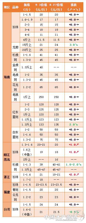 | 中國水產頻道原創報道, 喜憂參半!喜,廣東珍珠小幅度上漲;憂,龍膽、紅東、杉虎價格回落 文/ 水產前沿 實習編輯 吳寧靜 行情簡析 海南地區:本周海南珍珠維穩;受疫情影響,宴席較少,龍膽出現跌勢,15斤上規格跌3元/斤;紅東星斑也繼續下跌,1.3斤上規格跌2元/斤。現在大家都在等國慶漲價出魚,到時候的出魚量估計會很大。對紅東星斑來說,如果規格不脫節,是很難再漲價的。 廣東地區:本周廣東珍珠依舊有小幅度上漲。湛江規格珍珠最高漲2元/斤,可魚價仍然在成本價之下,沒有利潤空間,很多養殖戶都不愿出魚。杉虎斑規格魚出現跌勢,跌1-2元/斤,主要還是因為終端消費不起來。現在主要看國慶前后和下半年的宴席,需求量上去了,價格才能上去。 福建地區:本周福建石斑魚價格保持穩定。休漁期結束,大量海鮮上市,石斑魚的競品也較多;加上都比較看好中秋國慶前后的魚價,養殖戶都普遍惜售。 臺灣地區:本周臺灣地區價格微調。珍珠中魚下調0.5元/斤,如今是消費淡季,行情輕微波動也屬正常現象。 行業求助 日前,受市場供應行情及退排退塘的影響,海南萬寧縣和樂鎮約有450萬斤魚類待銷,1363戶養殖戶緊急求助。當地政府也在制定促銷方案,希望借助社會各界的力量,齊心協力幫助養殖戶度過難關。 筆者向當地政府人員翁先生了解到,到目前為止和樂鎮還剩余約400萬斤魚類緊急待銷。待銷魚類中,主要是4-10斤重的石斑魚居多,但由于海南市場趨于飽和,銷量不大。有流通商也表示,盡管在當地收購了一些石斑魚,但由于消費淡季、宴席少,市場對大魚的需求量不多,很多商家也不敢多拿魚。翁先生表示:現在迫切需要一些大的流通商到當地收購活魚,盡快幫助養殖戶將待銷魚類分銷出去。 水產前沿在此求助,希望各界人士伸出援助之手,一起幫助養殖戶度過難關。 有意向購買的商家可以致電: 62355219、13307559691 聯系人:翁先生 |
