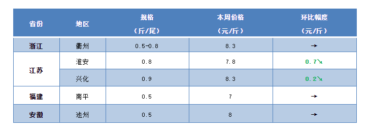 | 中國水產頻道原創報道, 唯有華南鯽魚吃香,流通順暢,塘頭價依然堅挺 文/水產前沿鄭鵬飛 一周行情簡析 近期全國鯽魚繼續呈現下滑勢頭,本周多個地區跌幅超過0.5元/斤。其中,湖北隨州地區8兩的鯽魚塘頭價也只賣到7元/斤;湖南長沙地區7兩的鯽魚最新批發價賣7.5元/斤;江蘇大部分地區6兩的鯽魚基本已跌至7元/斤左右,9兩以上的也只賣到8塊多一點;遼寧沈陽地區8兩的鯽魚塘頭價也只賣到6元/斤;甘肅蘭州市場半斤的鯽魚最新報價在8元/斤左右,較之前下滑了0.5元/斤;四川德陽地區半斤的鯽魚最新塘頭7.3元/斤了,下滑0.2元/斤。目前大部分地區的鯽魚行情都不是很好,接下來還有下滑的可能。有養殖戶反映,目前湖北洪湖地區白鰱的行情還不錯,1.3斤的白鰱塘頭賣到2.7元/斤,交到冷庫可以賣到3元/斤。最近流通商主要是收白鰱,鯽魚要的不多。 廣東江門鯽魚依然吃香 好在,目前華南地區的鯽魚行情還是不錯的。據了解,目前廣西桂林地區半斤的鯽魚塘頭價可以賣到7.8元/斤,武宣地區可以賣到8元/斤。雖然有流通商表示接下來鯽魚行情很難有回暖,但是目前華南地區鯽魚整體上還是比較好賣,預計短期內價格行情應該還是能夠穩住。 各產地行情分析 華南地區 本周華南地區的鯽魚整體行情還是不錯的,流通順暢,各地塘頭價基本保持穩定。 江門:最近江門地區的鯽魚行情還不錯,有養殖戶反映目前江門地區鯽魚非常好賣的,最新塘頭價價基本穩定在上周水平。 肇慶:本周肇慶地區的鯽魚行情保持相對穩定,目前半斤的鯽魚最新塘頭價繼續維持在7.2元/斤。養殖戶表示暫時沒有出現明顯波動。 中山:目前中山地區的鯽魚行情繼續保持穩定,塘頭價基本維持上周水平。流通商表示,珠三角地區冬天的鯽魚行情一般都很難有回暖,預計接下來還是會以穩定為主。 廣西:本周廣西地區的鯽魚行情還不錯。目前桂林地區半斤的鯽魚最新塘頭價繼續維持在7.8元/斤左右,武宣地區最新塘頭價可以賣到8元/斤,養殖戶表示近期鯽魚很好賣。 華中地區 本周華中地區的鯽魚行情還是繼續有下滑的勢頭,湖北部分地區下滑比較明顯。 湖北:近期湖北地區的鯽魚行情再次出現明顯的下滑。有洪湖地區養殖戶反映,最近流通商很少收鯽魚,主要是收白鰱。目前洪湖地區白鰱的行情還不錯,1.3斤的白鰱塘頭賣到2.7元/斤,交到冷庫可以賣到3元/斤。從養殖戶了解到,最近隨州地區的鯽魚塘頭價也是再次出現下滑,目前8兩的鯽魚塘頭價也只賣到7元/斤。 湖南:本周湖南地區的鯽魚行情繼續穩中有小幅下滑。目前長沙地區的鯽魚塘頭價基本維持上周水平,7兩的鯽魚最新批發價賣7.5元/斤,養殖戶表示行情不太好。最近,常德地區的鯽魚行情也是繼續有下滑勢頭。 華東地區 本周華東地區的鯽魚行情繼續穩中有降,江蘇部分地區鯽魚塘頭價再次出現明顯下滑。 江蘇:近期江蘇地區的鯽魚整體行情繼續保持下行態勢,多地塘頭價出現下滑。了解到,目前大部分地區6兩的鯽魚基本已跌至7元/斤左右,9兩以上的也只賣到8塊多一點。 福建:本周福建地區的鯽魚塘頭價繼續保持穩定。目前,南平地區半斤的鯽魚最新塘頭價繼續維持在7元/斤左右。 其他地區 東北地區:最近東北地區的鯽魚塘頭價也是繼續有所下滑。從養殖戶了解到,目前遼寧沈陽地區8兩的鯽魚塘頭價也只賣到6元/斤,養殖戶表示暫時沒有好轉的跡象。 西北地區:最近西北地區的鯽魚行情也是再次出現下滑。從流通商了解到,目前甘肅蘭州市場鯽魚最新報價在8元/斤左右,較之前下滑了0.5元/斤。 西南地區:本周西南多個地區鯽魚行情出現下滑。有流通商表示,目前四川成都地區的鯽魚行情不好,今天裝了幾千斤5-7兩的鯽魚,到市場上都沒什么人要。從養殖戶了解到,最近四川德陽地區的鯽魚行情也是再次出現下滑,目前半斤的鯽魚最新塘頭價值賣到7.2-7.3元/斤了,較上周下滑0.2-0.3元/斤。 |