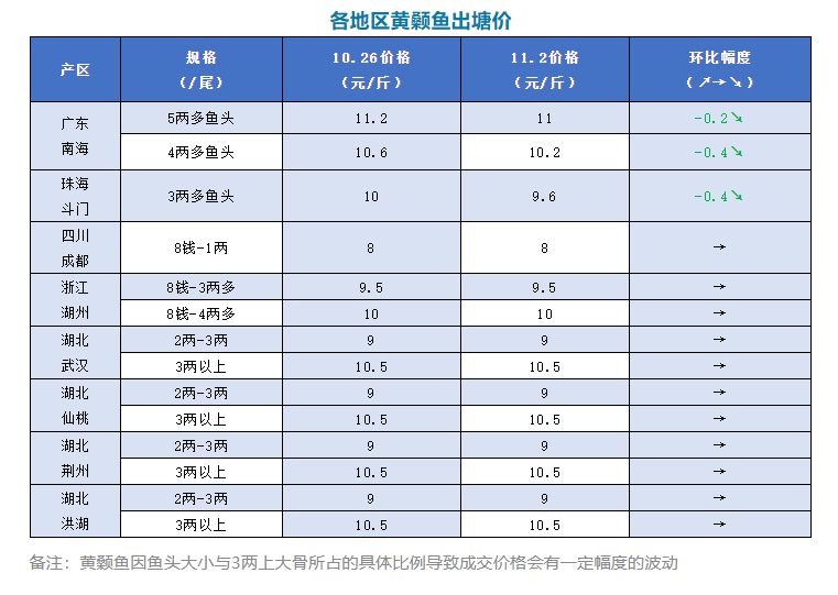 | 中國(guó)水產(chǎn)頻道原創(chuàng)報(bào)道, 文/圖何氏水產(chǎn)、水產(chǎn)前沿李靜 黃顙魚 本周廣東黃顙魚價(jià)格本周有小幅下滑,5兩多魚頭報(bào)價(jià)11元/斤,比上周下跌了0.2元/斤;4兩多魚頭報(bào)價(jià)10.2元/斤,比上周下跌了0.4元/斤;3兩多魚頭9.6元/斤,比上周也下跌了0.4元/斤。近期市場(chǎng)行情不好,銷量也不多,養(yǎng)戶出魚量少。預(yù)測(cè)后期價(jià)格上漲機(jī)會(huì)不大。 浙江湖州黃顙魚價(jià)格3兩多魚頭9.5元/斤,與上周保持一致;4兩多魚頭報(bào)價(jià)10元/斤,也上周也一樣。湖北各地黃顙魚價(jià)格本周都保持定,2-3兩多魚頭價(jià)格在9元/斤;3兩以上報(bào)價(jià)10.5元/斤。銷量跟上周差不多,預(yù)測(cè)接下來價(jià)格變化不大。 |