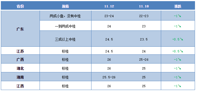 文 鱖鱸前沿 中國水產頻道原創報道,從上周開始,廣東鱖魚價格持續下跌,今天最好的魚開23.5元/斤,可能還會繼續回落。 據悉,本次鱖魚跌價跟近期凍品檢出新冠疫情事件有關,北方酒店鱖魚銷路急劇下滑,中桂銷量受阻,價格回落明顯。 此外,近期餌料魚價格再次上漲,讓鱖魚養殖戶壓力倍增,不少養殖戶有出魚意愿,再加上蟹塘鱖魚沖擊,導致鱖魚市場供大于求,塘頭價格不漲反跌。 受廣東鱖魚價格影響,江蘇、湖北、廣西、湖南等省份價格也出現下跌,目前行情一般,銷量不大。 各地區鱖魚塘頭價與上周對比: 備注:以上價格僅供參考,偏小與偏大價格會略有出入。 編號:gybj-2020-43 部分地區餌料魚塘頭價: |