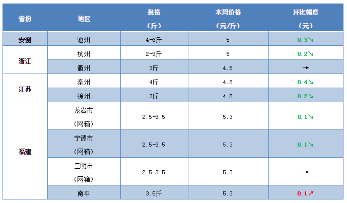 文/ 水產前沿 鄭鵬飛 一周要聞 慘!淡水魚再現大爛市,多品種出現大幅下滑 中國水產頻道原創報道,魚價行情剛剛有點好轉,最近部分市場再次出現爛市情況,多個品種出現大幅下滑。有養殖戶反映,可能是因為擔心疫情再次爆發,最近水產品消費疲軟,各種魚都是賣不動。據了解,目前武漢白沙洲市場2-4斤的草魚只賣4.4元/斤,5-8斤的草魚賣4.8-5.2元/斤;標鱖最新市場價只賣到22元/斤,而且昨天再次出現大跌;4-6兩的鯽魚才賣4元/斤左右,6兩以上的彭澤鯽也只賣到5.5-6元/斤;鳊魚最高也只賣到4.8元/斤,很多時候都是3.2元/斤殺頭賣;現在白鰱1斤以上規格的才有人要,大頭魚也是跌的很慘。 最近華南地區多個品種也是再次出現下滑。廣東梅州地區水庫吊網草魚塘頭價出現0.2元/斤的下滑,3斤的草魚塘頭價在5.6元/斤左右;肇慶地區3斤的草魚最新塘頭價賣5.2元/斤,下滑0.1元斤。最近一周內多地鱖魚再跌1元,加州鱸跌破9元,黃顙最高跌1元,生魚跌0.2元,珠海海鱸也早已經跌破成本。 受外地草魚的沖擊,最近四川、重慶等地草魚再次下跌0.2元/斤。甘肅蘭州市場3斤的草魚最新報價在5.6元/斤,下滑0.1-0.2元/斤。有養殖戶表示,最近江西地區的草魚行情也是再次出現下滑,自己的魚已經停售了。 4大利好消息,未來魚價能否迎來轉機?! 第一、受到冷空氣影響,未來幾天我國中東部地區將迎來一輪大范圍強雨雪、大風降溫天氣。冷空氣的來襲或拉動水產品消費。 第二、隨著氣溫的不斷降低,北方地區不少養殖戶已經干塘,存塘魚已不多,未來魚或者供不應求。 第三、最近飼料價格再次出現大幅上漲,不少水產品已跌破成本價,或倒逼魚價上漲。 第四、近期不斷有進口水產及肉制品被檢測出新冠病毒,相比進口水產品,國內養殖水產品則更安全,也更受歡迎。 11月14日江蘇草魚出現搶購現象 隨著氣溫的降低,不少養殖戶已經干塘。據了解,目前山東地區存塘魚已經僅剩2成左右。最近河北地區草魚繼續有小幅上漲,目前唐山3斤的草魚最新塘頭價在4.8-4.9元/斤,較上周上漲0.1-0.2元/斤。本周加州鱸最高有0.5元/斤的反彈,海鱸、泥鰍、太陽魚也都有明顯反彈跡象,牛蛙更是全線飄紅,各地現金價格均有0.3-0.4元/斤的上調。未來,草魚行情能否迎來真正的轉機,歡迎留言分享! 一周行情 華南地區 本周華南地區草魚塘頭價整體上維持穩定,受大行情下滑的影響,局部地區草魚行情仍有小幅下滑。 中山:本周中山地區的草魚苗種行情基本保持穩定,局部有小幅下滑,短期內應該不會有太大波動。近期大草魚和脆肉鯇的流通量較大,隨著脆肉鯇新魚的加快上市,未來脆肉鯇行情可能會受到一定沖擊,目前價格基本穩定在13元/斤左右。據流通商介紹,目前中山地區統鯇行情繼續保持穩定3斤的草魚塘頭價繼續維持在5-5.3元/斤之間,暫時沒有出現明顯波動。 肇慶:本周肇慶地區草魚行情繼續有小幅下滑,目前3斤的草魚最新塘頭價賣5.2元/斤,較上周繼續下滑0.1元斤,養殖戶表示近期應該不會出現大的波動。 梅州:最近梅州地區的草魚行情出現下滑跡象。據業內人士介紹,最近梅州地區水庫吊網草魚塘頭價出現0.2元/斤的下滑,目前3斤的草魚塘頭價在5.6元/斤左右。 江門:本周江門地區的草魚行情還是比較穩定,目前3斤的草魚塘頭價繼續維持在5元/斤左右。 廣西:最近廣西地區的草魚行情依然疲軟,塘頭價暫時保持穩定。從養殖戶了解到,目前桂林地區3斤的草魚塘頭價繼續維持在5.3元/斤,養殖戶表示魚還是不好賣;武宣地區3斤的草魚塘頭價賣5.5元/斤,基本維持上周水平。 華中地區 本周華中地區的草魚行情整體上繼續穩中有跌,部分市場淡水魚行情一度全線下滑。 湖北:本周湖北地區淡水魚行情呈現明顯的下滑趨勢,多個品種出現大幅下跌。養殖戶表示,可能是今年大家都擔心疫情會再次爆發,錢都在省著用,最近各種魚都是賣不動。最近草魚越來越難賣,武漢白沙洲市場2-4斤的草魚只賣到4.4元/斤,5-8斤的草魚賣4.8-5.2元/斤,很多時候都是殺頭賣。標鱖市場價只賣到22元/斤,塘頭只賣到十多塊一斤,而且昨天再次出現大跌。以往8-9兩的白鰱都可以賣,現在1斤以上規格的才有人要。最近大頭魚和鯽魚也是跌的很慘,4-6兩的鯽魚才賣4元/斤左右,6兩以上的彭澤鯽也只賣到5.5-6元/斤。鳊魚最高也只有4.8元/斤,很多時候都是3.2元/斤殺頭賣。目前,洪湖地區3斤的草魚塘頭價繼續維持在4.6-4.7元/斤,雖然草魚價格沒有下降,但是鯽魚和花白鰱的價格也是下滑的厲害。 湖南:本周湖南地區的草魚行情保持相對穩定,塘頭價暫時沒有出現明顯波動。據養殖戶介紹,目前常德大部分地區3斤的草魚最新塘頭價賣4.6元/斤左右,部分塘口最高可以賣到4.9元/斤。 江西:本周江西地區的草魚行情繼續呈現下滑勢頭。有養殖戶表示,最近南昌地區的草魚行情一跌再跌,近期自己的魚已經停售了,希望后期行情能有所好轉。 華東地區 本周華東地區的草魚行情也是繼續呈現下滑態勢,多地塘頭價再次出現下跌。 福建:本周福建地區草魚塘頭價整體上還算穩定,部分地區繼續呈現小幅下滑的勢頭。據養殖戶介紹,目前南平、三明等地區3斤的草魚塘頭價繼續維持在5.3元/斤,基本維持上周水平。 江蘇:本周江蘇地區的草魚行情再次出現下滑。養殖戶表示,新冠疫情對大家的流通和消費還是有很大的影響,近期江蘇地區的水產品市場交易都很冷清,消費疲軟。據了解,目前江蘇泰