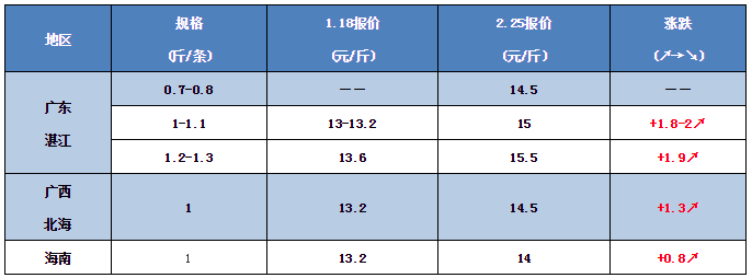 文/ 中國水產(chǎn)頻道 張紅 中國水產(chǎn)頻道原創(chuàng)報道,2月份正遇牛年春節(jié),各大水產(chǎn)品價格暴漲,尤其是對蝦和石斑魚,幅度之大近年少有。由于不少外鄉(xiāng)人選擇就地過年,在水產(chǎn)行情強勢走高拉動下,金鯧魚價格也走高。1.3斤規(guī)格的活鮮價一度暴漲至19元/斤,隨著節(jié)日消費降溫,目前魚價也回落到正常且理性的水平。經(jīng)歷了春節(jié)一波上市小高潮后,現(xiàn)在存海的金鯧魚規(guī)格比較小,養(yǎng)殖戶惜售心理比較強,尤其是兩廣地區(qū),出魚不多。雖然目前的魚價與春節(jié)高潮價格相比,有所下跌,但也節(jié)前比較,仍有明顯上漲,最高漲幅達2元/斤。 今年節(jié)后魚價總體較往年要好,如草魚、加州鱸、生魚、石斑魚行情仍然強勁,對蝦價格近日大幅下滑,但若按現(xiàn)價賣蝦,獲利甚豐厚,故養(yǎng)殖戶投苗熱情高漲。金鯧魚也一樣,1斤規(guī)格在15元/斤,養(yǎng)殖也有盈利。但是魚價上漲的同時,也迎來了飼料價格暴漲,全線漲,淡水魚料、特種魚料,還有南美白對蝦料、金鯧魚料也大幅漲,引發(fā)了養(yǎng)殖戶紛紛吐槽。 冰鮮魚價格行情 2月25日,湛江地區(qū)冰鮮魚碼頭價0.8斤規(guī)格為14.5元/斤;1-1.1斤規(guī)格為15元/斤,較上月同期上漲了1.8-2元/斤,但較去年同期下跌了1.2-1.6元/斤;1.2-1.3斤規(guī)格為15.5元/斤,較上月同期約上漲1.9元/斤。 廣西北海存魚量仍不少,平均幾個養(yǎng)殖大戶每人或有超100萬斤,但由于魚價偏低規(guī)格偏小魚不夠肥,故近日碼頭出魚少,交易顯冷清。1斤規(guī)格冰鮮魚碼頭價為14.5元/斤,較上月同期上漲了1.3元/斤,較去年同期約下跌近2元/斤。 海南地區(qū)魚價1斤規(guī)格冰鮮魚碼頭價約14元/斤,較上月同期上漲0.8元/斤,較去年同期約下跌了0.5元/斤。 2021年2月25日金鯧魚(冰鮮)碼頭價 凍品魚價格行情 隨著年假結(jié)束,各行各業(yè)開工開業(yè),各大凍品商、流通批發(fā)商已開門做生意。但據(jù)部分人士反饋,由于海上活鮮、冰鮮上市魚源源不斷供應市場,在一定程度上打擊了凍品魚的銷量。故市場凍品魚銷售不溫不火,價格也沒有太大起色,以維持節(jié)前的價格為主。2月25日凍品魚批發(fā)價如下,供大家參考。 100/200克規(guī)格為100元/件,200/300克規(guī)格為128元/件,300/400克規(guī)格為152元/件,400/500克規(guī)格為165元/件,500/600克規(guī)格為185元/件,600/700克規(guī)格為190元/件,價格與上月持平。(注:規(guī)格都是凈重8公斤/件) @少數(shù)派提醒:警惕白芝麻(本尼登蟲)侵害 摘自中國水產(chǎn)頻道資深網(wǎng)友@少數(shù)派的朋友圈:過冬之后的金鯧,體質(zhì)還比較弱,身體機理正在調(diào)整之中,如果白芝麻大量滋生,也會構(gòu)成重大損失,提醒養(yǎng)殖朋友注意防范。 感染白芝麻的金鯧魚 (溫馨提示:本文的價格數(shù)據(jù)和行情分析觀點僅供大家學習和參考,不構(gòu)成投資和交易建議。) |