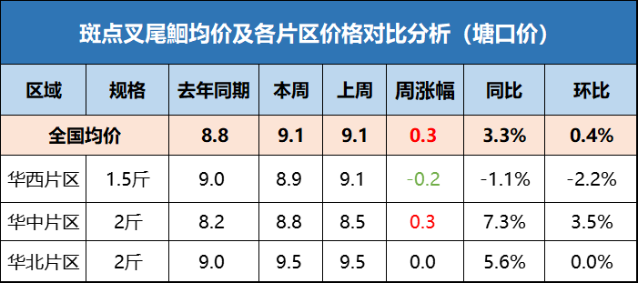 2021年4月30日斑點叉尾鮰塘口價格一周播報