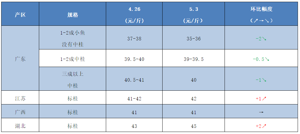 各地區桂花魚出塘價