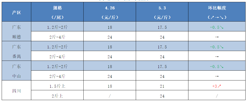 文/圖 何氏水產(chǎn)、水產(chǎn)前沿 李靜 中國水產(chǎn)頻道原創(chuàng)報道,1、本周廣東江團(tuán)價格,1.2-2斤報價17.5元/斤,比上周下跌0.5元/斤;2-4斤的報價24元/斤,保持穩(wěn)定。近段時間,塘頭多魚出來了,特別是1-2斤規(guī)格的魚。大規(guī)格魚也相較之前沒有那么緊張了,魚價暫時持穩(wěn)。 2、四川江團(tuán)1.5斤以上報價21元/斤,上漲3元/斤,2.0斤以上價格24元/斤,當(dāng)?shù)佤~規(guī)格還不是很大,出魚量也不多。 各地區(qū)江團(tuán)出塘價 注:上述價格及行情分析僅供參考,市場有風(fēng)險,入市需謹(jǐn)慎。 |