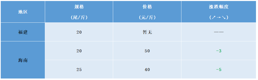斑節對蝦不升反降,價格跌幅約3-5元/斤