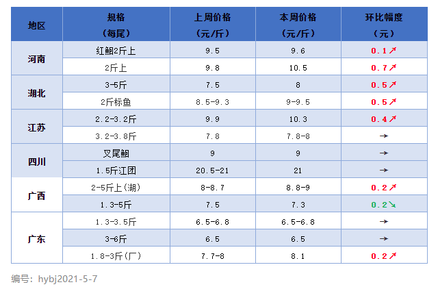 | 中國水產(chǎn)頻道原創(chuàng)報道, 文/水產(chǎn)前沿曾鈴程 河南等地:魚存塘不多,價格上漲。河南本地魚2-3斤黑鮰標(biāo)魚塘頭價10.5元/斤,3斤以上超大魚8.6-8.8元/斤;紅鮰標(biāo)魚9.6元/斤,超大魚6.5元/斤。天津2-3斤規(guī)格黑鮰,10元/斤。 華中地區(qū):湖北黑鮰,價格上漲。仙桃,2-3斤規(guī)格魚塘頭價9元起;統(tǒng)貨,7.3-7.8元/斤;3-5斤,8元/斤起。枝江1斤起,6.5元/斤;1.8-2.8斤,7.5元/斤。 江蘇等地(華東):江蘇鮰魚缺魚了,新魚上市應(yīng)該要在6月以后,價格上漲。目前2-3斤北京貨10-10.3元/斤;3斤以上超大魚7.8-8元/斤。 川渝等地:四川鮰魚穩(wěn)如泰山。叉尾鮰魚9元/斤;紅鮰9元/斤。江團1.5-2.4斤,21元/斤。陜西,1.2斤以上,9.2元/斤;2-3斤,9.8元/斤;3斤上,9.5元/斤。 華南地區(qū):廣東鮰魚,穩(wěn)定為主,工廠開背魚提價。珠三角,1.3-3.5斤,6.5-6.8元/斤;1.8-3斤,1.9-3.2斤,8.1元/斤(加工廠價);3-6斤,6.5元/斤。江門,1.3斤以上,6.7-6.8元/斤。 廣西鮰魚,夠規(guī)格貨很少,不過天熱,貴州車少,行情以穩(wěn)為主。北海,市場1.2-5斤,7.3元/斤;2-5斤,8元/斤;3-6斤,7.2元/斤;加工廠1-1.8斤,2.6-4斤,6.6元/斤;1.8-2.6斤,8.5元/斤。欽州,1.8-3斤,7.5-7.7元/斤;網(wǎng)箱鮰魚,2~5斤、2~6斤、2~7斤,8.8-9元/斤。 |