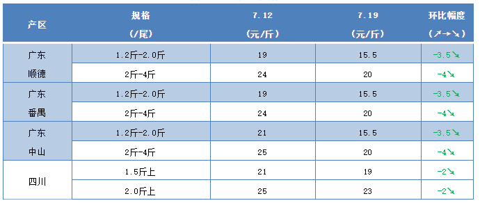 四川江團1.5斤以上報價19元/斤,比上周也下跌2元/斤,2.0斤以上價格23元/斤,比上周也下跌了2元/斤,當地魚規格還不是很大,出魚量也不多,接下來價格還會有少幅下跌空間。