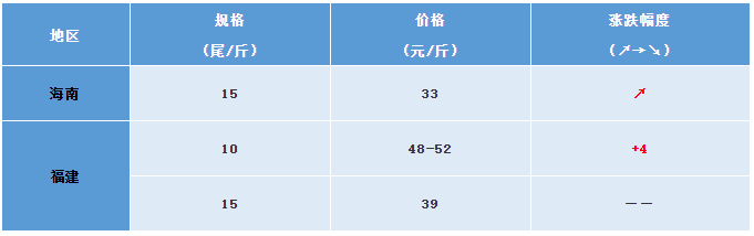 文/ 水產(chǎn)前沿 何鴻浩 水產(chǎn)前沿網(wǎng)原創(chuàng)報道,近期斑節(jié)對蝦價格價格行情一路上漲,已上漲五周,且本周大規(guī)格蝦最大漲幅達(dá)4元/斤。一位福建金剛蝦飼料業(yè)者表示,目前市場上已經(jīng)沒有什么蝦了,存塘量低,價格不出意外不會下跌,只會漲。另一位福建從業(yè)者表示,現(xiàn)在價格走高,東山地區(qū)還有準(zhǔn)備過冬的,漳浦地區(qū)的存塘也只有2-3成了。 隨著金剛蝦養(yǎng)殖的火熱,越來越多養(yǎng)殖戶將其視作南美白對蝦的替代品,因此也在思考兩者的相似與差異之處,冬棚養(yǎng)殖自然也在考慮范圍之內(nèi)。目前看來,部分養(yǎng)殖戶正在嘗試冬棚養(yǎng)殖金剛蝦,也反饋了多個成功案例,表示雖然養(yǎng)殖時間稍長,但可以養(yǎng)成大蝦。另一方面,有不少人認(rèn)為冬棚養(yǎng)殖金剛蝦風(fēng)險高于南美白對蝦,養(yǎng)殖效益也不如南美白對蝦,故仍然選擇養(yǎng)殖南美白對蝦。 斑節(jié)對蝦 8月16日斑節(jié)對蝦塘頭價 備注說明: 1.行情時有波動、價格可能偏差、僅供讀者參考 2.斑節(jié)對蝦因品相差異、渠道不同,價格有所波動 3.報價編號:qtxj2021-8-16 |