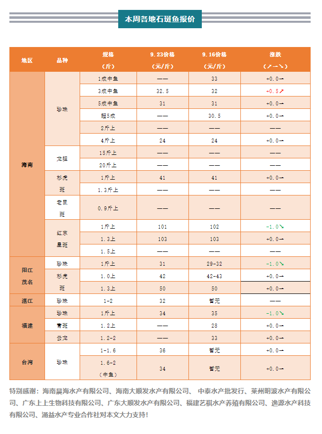 | 水產前沿網原創報道, 本周石斑魚市場小幅下跌,但整體平穩,后市上漲可能性較大 文/水產前沿何鴻浩 行情簡析 海南地區:近日海南地區石斑魚價格整體趨穩,只有少部分品種價格小幅度下滑。目前珍珠斑1-1.6斤規格報價30.5-32.5元/斤;4斤上規格珍珠斑24元/斤;衫虎斑1斤上規格報價41元/斤;紅東星斑1斤上規格報價101元/斤;1.3斤上規格報價103元/斤。海南從業者表示,現在市場的供求關系比較穩定,也沒有集中出魚的情況,所以價格走得很穩,希望國慶市場也能如此。 廣東地區:本周廣東地區石斑魚價格有小幅度波動,陽江、茂名地區珍珠斑統貨報價31元/斤,下滑1元/斤;衫虎斑1斤上規格報價42元/斤,1.3斤上規格報價50元/斤。廣東從業者表示,現在福建市場沒魚出,主要就靠廣東市場出魚和消費,所以整體出魚還是蠻多的,價格也比較穩。此外,預計廣東市場國慶節假日消費也不少,價格上漲的可能性還是蠻大的。 福建地區:本周福建地區石斑魚價格小幅度下跌,目前小規格珍珠斑報價34元/斤。當地業者表示,疫情整體還算是樂觀的,政府的防控措施非常到位。但福建市場錯過了中秋節,甚至還可能錯過國慶節。同時,本地的云龍斑還沒大批量上市,養殖戶還在等國慶,但可能趕不上國慶消費。總的來說,疫情反復,生意難做。 另一方面,臺灣石斑魚已經快一個月沒出來了,都堵在了當地。臺灣石斑魚依靠本土市場消化只能是杯水車薪,除了賣給大陸,別無選擇。所以,屆時一旦開通,又是一大批魚集中上市,或會沖擊市場,所以石斑魚重新回到漲價趨勢還是需要一段時間。 臺灣地區:本周臺灣地區市場有所交易,但交易量極少,小規格珍珠報價為36元/斤,中魚報價34元/斤。當地業者表示,還是要等福建疫情得到控制,市場才能有所恢復,不然單靠本地極少量的消費,根本消化不了石斑魚存塘。 |
