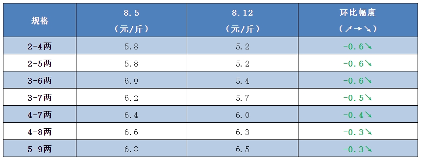| 水產前沿網原創報道, 牛蛙行情 明日牛蛙主流廠家報價5.2-6.5元/斤,相比上周同期下調了0.3-0.6元/斤。 目前暑期已經過半,但牛蛙行情卻不如大家的預期,多次不漲反跌。據了解,目前多地新蛙已經上市,規格普遍在3-6兩、3-7兩以上,而華中湖南、江西等地過冬蛙存塘量仍然還是很大,像江西地區預計至少還要二十多天才能出完。牛蛙存塘量大,所以七夕一過牛蛙又再次迎來了跌價。 蝌蚪苗方面,由于行情低迷投苗需求量少,加上當前季節生產成本較高,8-9月份大部分苗場暫時停產,而小四腳也因為養殖戶的整體養殖信心較弱,行情也持續低迷,目前50-60頭規格的小四腳報價為15-18元/斤。 泰蛙行情 泰蛙方面,上周蛙價回升0.5-0.6元/斤,但好景不長,本周蛙價再次回落0.5元/斤,目前泰蛙新蛙持續上市,加上牛蛙跌價的沖擊,業內人士預計價格還會繼續回落。 黑斑蛙行情 黑斑蛙方面,現在新蛙的規格逐漸起來,而且具有價格優勢,像江浙滬等地方也開始選擇用老蛙代替新蛙,很多流通商也停止收老蛙。行情方面,新蛙報價基本穩定在8-12元/斤左右,除非部分場地出現病蛙才會被壓價。 目前價格再低養殖戶也面臨虧本不愿意出,另外因為越來越多新蛙達到上市規格,價格也很難再漲回去,只能靜待十月之后氣溫降低蛙價預計才會逐漸回暖。 (溫馨提示:本文的價格數據和行情分析及觀點僅供大家學習和參考,不構成投資和交易建議。) |