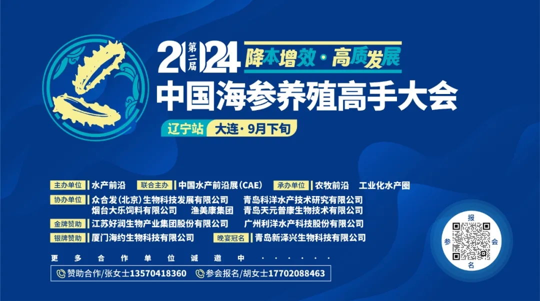 | 水產前沿網獨家報道, 陸有人參,水有海參。海參是中國傳統的高檔滋補品,也是中國水產養殖業最有發展潛力的高值品種之一。近年來,經歷了大起大落。隨著后疫情時代消費逐步復蘇,當下,海參養殖產業正迎來新的發展機遇。 同時,我們也顯著地感受到,受限于產能快速增長與消費降級之間的矛盾,2024年的海參從業者很受傷。當下,海參養殖終端是沖高產還是控成本?行情何時上行?新銷售渠道在哪?資金不夠怎么辦?這棋接下去怎么走?關乎每位從者業的切身利益。 為進一步推動我國海參繁育養及加工流通全產業鏈高質量發展,為海參養殖戶就如何養好并賣好參帶來新思路,水產前沿將在我國海參養殖量第一大、養殖歷史最悠久、遼參品牌出處地---遼寧大連,聯合行業核心力量,以“降本增效·高質發展”為主題,廣泛邀請業內專家、全產業鏈各要素的創新主體,共同于9月中下旬舉辦“2024第二屆中國海參養殖高手大會”。 會議主題 降本增效·高質發展 時間·地點·規模 2024年9月中下旬·遼寧大連·500人 組織單位 主辦單位: 水產前沿 聯合主辦: 中國水產前沿展(CAE) 遼寧省海洋水產養殖協會 協辦單位: 眾合發(北京)生物科技發展有限公司 青島科洋水產技術研究有限公司 煙臺大樂飼料有限公司 漁美康集團 青島天元普康生物技術有限公司 特別支持單位: 大連市普蘭店區海參協會 金牌贊助: 江蘇好潤生物產業集團股份有限公司 廣州利洋水產科技股份有限公司 銀牌贊助: 廈門海約生物科技有限公司 晚宴冠名: 青島新澤興生物科技有限公司 更多贊助誠邀中…… 主要參會人員 政府、科研專家、流通加工以及產業鏈各環節關鍵人物、海參養殖戶、育苗戶 會議亮點 1.海參人大聚會:超500位政府、大型商超及線上采購負責人、養殖戶、收購商、水產品加工企業、行業協會、產業專家等嘉賓齊聚一堂,共同商討海參產業發展大計; 2.前沿產業報告:邀請實戰派專家,直面海參養殖行業(養殖、育苗、加工、銷售)痛點,總結、分享最高效經驗與技術; 3.全國需求聯動:定向邀請不同海參核心區買手、采購平臺、養殖公司、流通企業等產業鏈人物現場面對面交流需求,了解海參產業實況及海參品質特點,促進成交,促進海參產業健康可持續發展。 參會報名 1.參會費:800元/人/場,提前報名繳費享優惠價600元/人/場(含聽課費、會議用餐、會議資料,交通、住宿自理) 2.請掃描下方二維碼報名 ↑↑↑ 【煩請備注:姓名+海參會議】 3.會務組: 胡女士:17702088463 李女士:13725215269 贊助合作 張女士:13570418360 ↑↑↑ 【煩請備注:姓名+海參會議】 往屆精彩 |