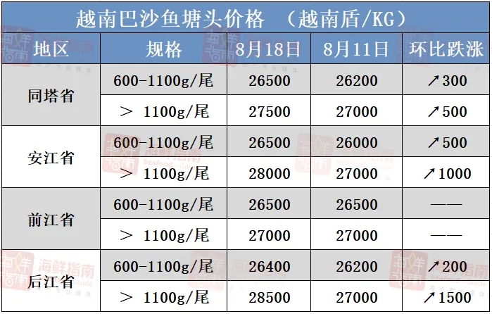 | 水產前沿網獨家報道, 巴沙魚進口總量同期漲幅達21.5%!開背同期增長近94.4%! 7月海關數據出爐,中國自越南進口巴沙魚總量再度回升!據海關數據披露,7月進口越南巴沙魚總量近1.48萬噸,相較于2023年7月增長21.5%;其中,魚片/魚柳0.73萬噸,開背魚0.75萬噸。(本文數據來源海關總署,且計算中四舍五入保留兩位數) 近三年中國進口越南巴沙魚總量情況如下: 注:數據來源海關且僅計算正關進口 值得注意的是,7月總量明顯回升主要是因為開背魚增長顯著,相較去年同期(0.38萬噸)增長94.4%,而魚片/魚柳稍有下滑,相較去年同期(0.83萬噸)下跌12.1%。 據悉,近期以來國內巴沙魚烤魚市場有所發展,小型/一人份連鎖烤魚加盟相較火熱,既符合現在較快的生活節奏,也符合現在中小型的消費需求。據經銷商反饋,七月初開背魚走量明顯有提升,魚片/魚柳穩定走量但稍有下滑,因此,在進口越南巴沙魚時,開背等應用于烤魚市場的原料進口量增長明顯,符合整體7月的進口數據的變動。 圖片注:數據來源海關且僅計算正關進口 巴沙魚仍然占據超6成烤魚市場!工廠大規格產品報價上調 在海鮮指南日前的走訪中,業內人士表示,目前巴沙魚仍然占據超6成烤魚市場,除此之外還有斑點叉尾鮰、黑魚等作為烤魚市場的主要原料,目前黑魚價格有所回升,之后巴沙魚也有增長的空間。國內市場烤魚品牌連鎖仍處于增長中,餐飲門店有所增加,因此巴沙魚大魚用量增長,國內對大魚的需求量增加,進口商也表示近來開背也比魚片魚柳量走量更多。 另外,據反饋目前越南塘頭仍然較缺大規格原料,養殖戶較少將魚養殖到更大規格而承擔更多風險,因而近來大規格原料價格再次上調,目前國內9月份訂單越南工廠大魚的報價上漲約1角美金。 據數據統計,7月份600-1100g/尾越南巴沙魚塘頭價格整體呈現下滑趨勢,且波動較大,最高價和最低價相差近1200越南盾/KG,而大于1100g/尾塘頭價格呈現上漲趨勢,較為穩定,月內上漲約500越南盾/KG。 注:價格采集自越南本地魚販、養殖戶群組和冷凍廠,付款條件為現金/7天 據悉,8月初首次報價,越南巴沙魚塘頭價格再度上漲,幅度在300-1500越南盾/KG,其中大魚價格上調明顯。 注:價格采集自越南本地魚販、養殖戶群組和冷凍廠,付款條件為現金/7天 |