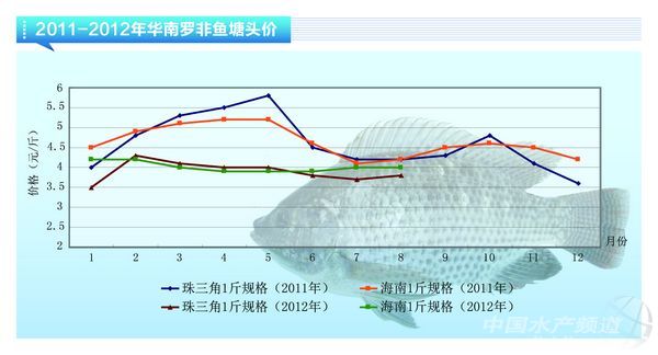 8月中旬,華南地區羅非魚價格主線關鍵詞仍是“低迷”,但由于部分地區羅非魚供應處于青黃不接狀態,價格略有上漲,市場開始有好轉的趨勢。1-1.6斤/尾規格魚加工廠收購價,海南地區為4元/斤,廣西地區為3.8-4元/斤,廣東粵西地區為3.9-4元/斤,珠海地區為3.8元/斤;0.6-1斤/尾規格魚,海南3.1-3.3元/斤,廣西為3.2元/斤,廣東粵西地區為3.1元/斤,珠海地區2.8-3元/斤。
