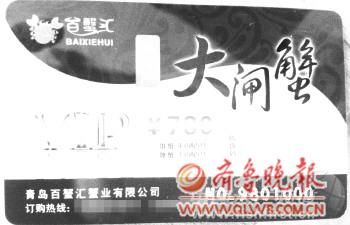 一家陽澄湖大閘蟹專賣店出售的禮品卡。