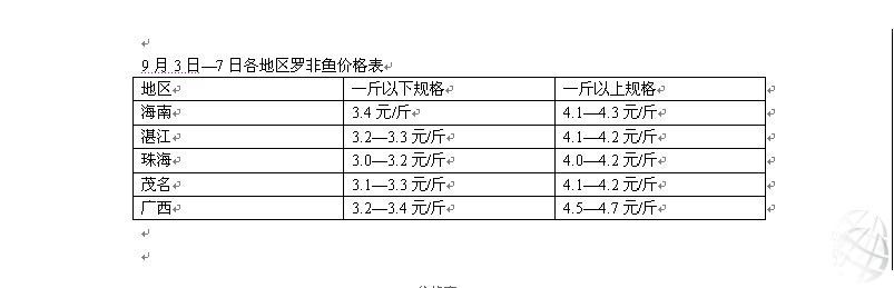 從各地區羅非魚價格表可以看出,規格在一斤以上的魚的價格基本一致,在4.0—4.3元/斤這范圍波動。與其它地區相比,廣西地區價格依舊那么高。