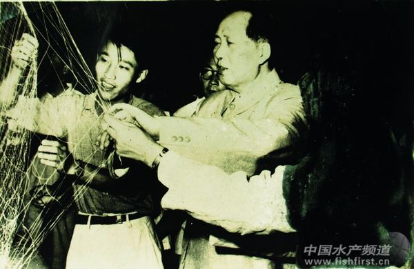 1958年“五一”前夕,毛澤東同志參觀廣東省農具改革推廣評比展覽會水產區時,我校附設水產技術學校漁撈科1955屆校友瞿貴華講解網具改革的情景